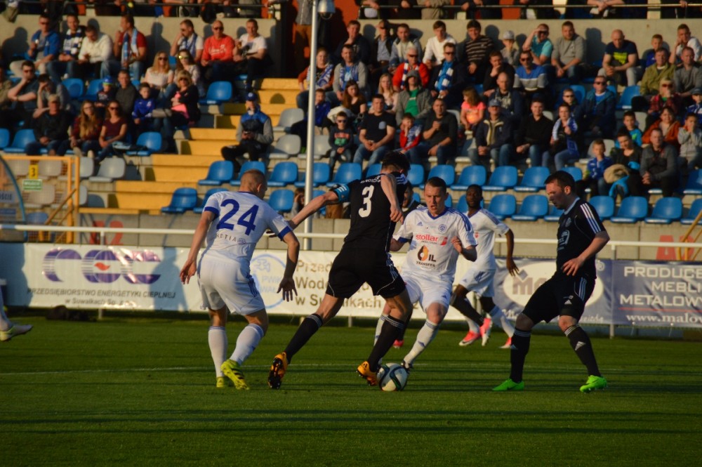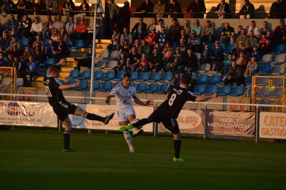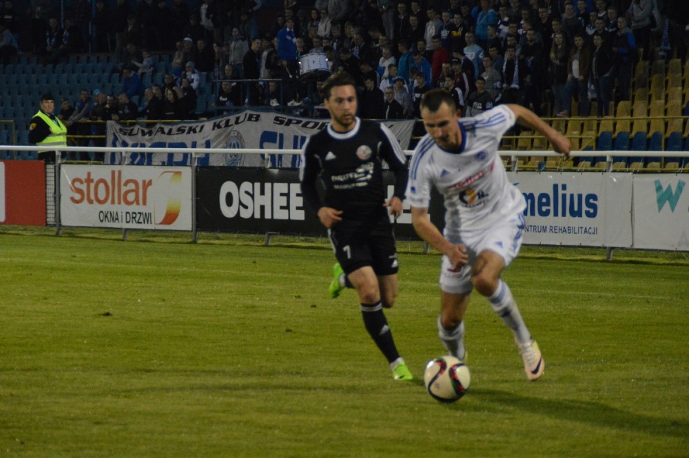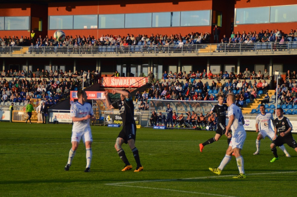 Suwalczanie mogli podwyższyć wynik po iście bilardowej akcji, ale Kamil Zapolnik chciał ja zakończyć nazbyt efektownie. Po jego uderzeniu piętka piłka o metr minął słupek bramki przyjezdnych.