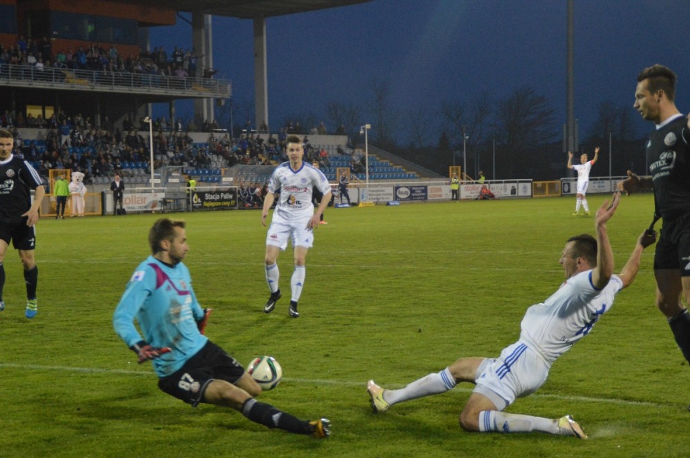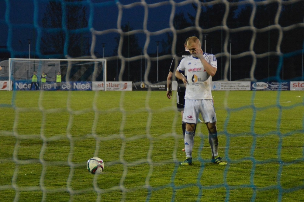 Nie udało się z popisać z bliska, nadarzyła się na szczęście okazja z 11 metrów. Szarżującego prawą strona Mateusza Radeckiego chwytem za koszulkę zatrzymał Krzysztof Bąk i sędzia podyktował rzut karny. Kamil Zapolnik strzelił a’la Antonin Panenka, zwodem położył Gerarda Bieszczada na murawę i miękkim lobem zmieścił piłkę pod poprzeczkę. Drugi gol w meczu była dla Zapolnika dziewiątym w sezonie.