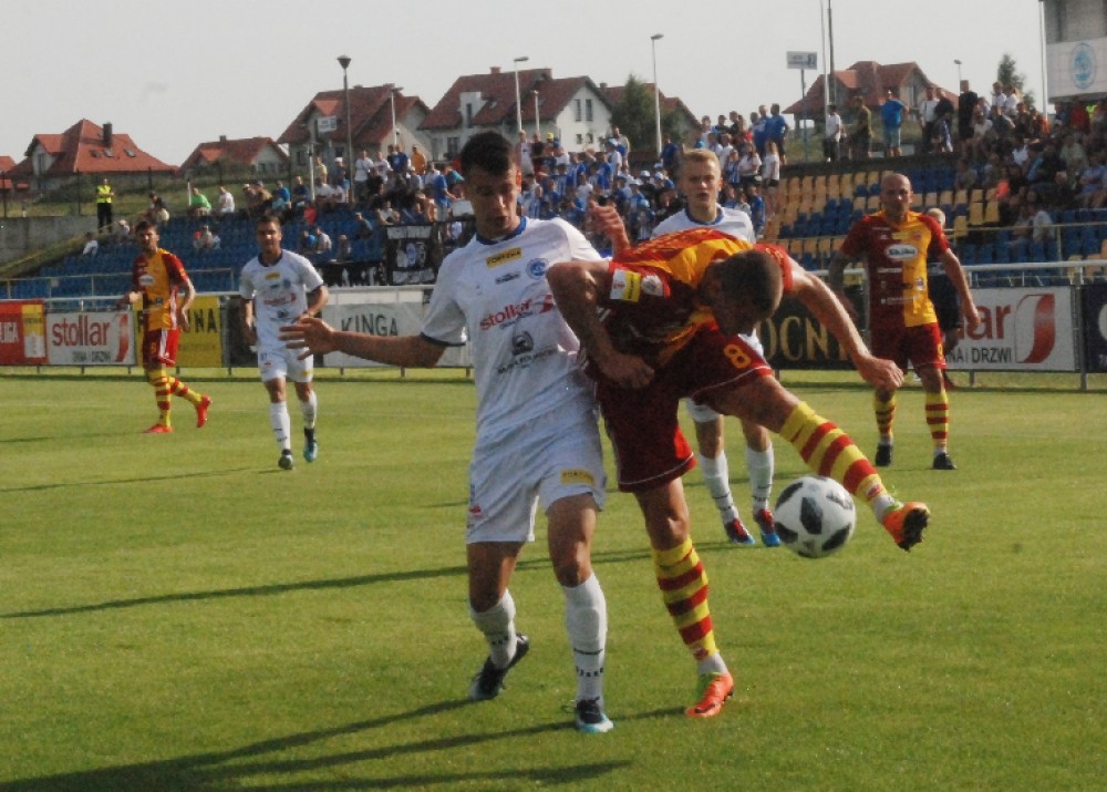 Sam mecz miał dwa oblicza. Pierwsza połowa pod dyktando Chojniczanki, która stworzyła kilka bramkowych sytuacji, ale na gola zamieniła tylko jedną i to po prezencie od sędziego. W 24. min. arbiter podyktował rzut wolny dla gości dopatrując się faulu obrońcy w pobliżu pola karnego. Po dośrodkowaniu z lewej strony piłkę do bramki Damiana Węglarza wpakował Janusz Surdykowski.