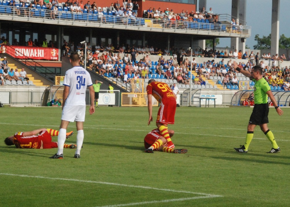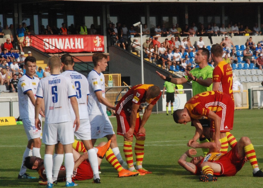 Kiedy w 74 min. za rzekomy faul drugą żółtą, a w konsekwencji czerwoną kartką został ukarany zawodnik gospodarzy Robert Bartczak, wydawało się, że tego meczu grające w 10 Wigry nie będą w stanie nawet zremisować. A było inaczej.