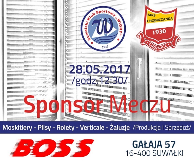 Łatwo nie będzie, bo Chojniczanka przyjedzie do Suwałk po zwycięstwo. Sponsorem niedzielnego, roozpczynającego sie o 12.30 spotkania jest znana nie tylko w Suwałkach firma BOSS. Kibice, ktorzy pojawią się na stadionie, otrzymają kupony, uprawniające do 10-procentowej ulgi w zakupach produktów i usług firmy BOSS.