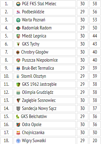 Wprowadzenie baraży, w których wezma udziaÅ‚ zespoÅ‚y z miejsc 3.-6. sprawiÅ‚o, że rozgrywki sÄ… niezwykle emocjonujÄ…ce. ZajmujÄ…cÄ… 9. miejsce TermalikÄ™ Bruk-Bet Nieciecza dzielÄ… tylko 4 punkty od baraż i ma ona tylko 3 oczka przewagi nad spadkowÄ… strefÄ….