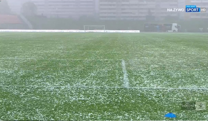 Przerwany w 27 min. na 30 minut ze względu na gradobicie w Jastrzębiu