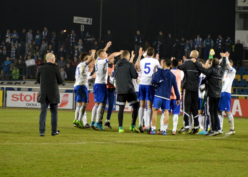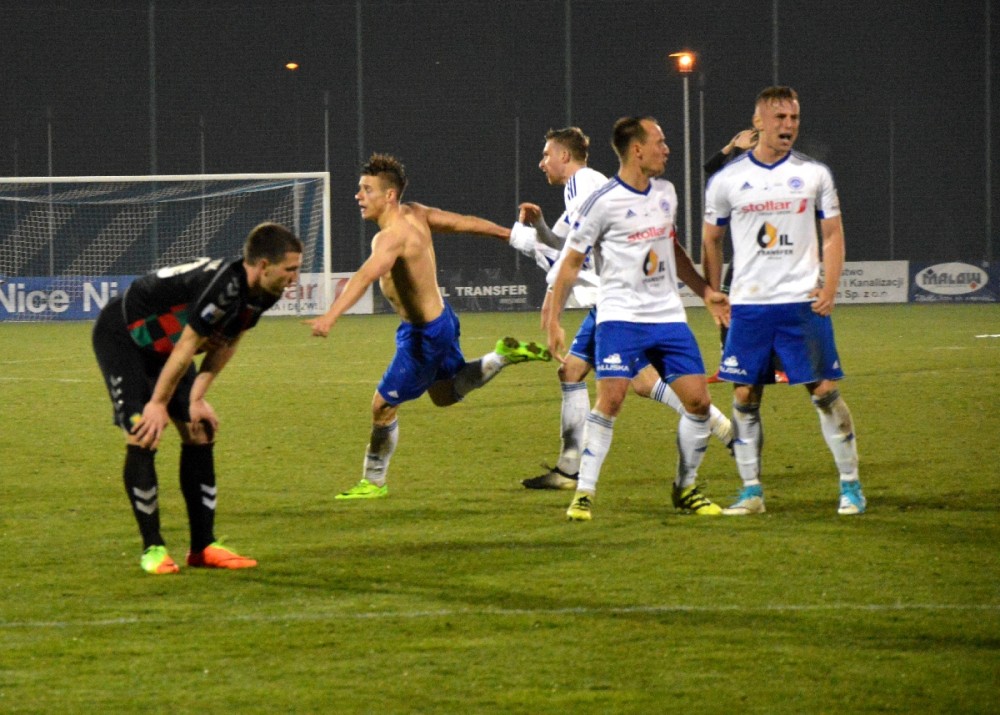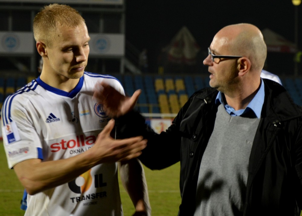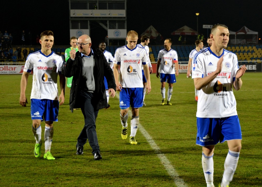 - Chciałem zagrać piętą do Damiana Gąski, ale piłka trafiła do Rafała, no a w końcu do mnie - opowiada szczęśliwy strzelec. - Wypada się cieszyć i jechać na puchar do Gdyni z nadzieją na dobry występ. Życie lubi pisać różne scenariusze, wierzę w możliwość odrobienia strat po przegranej u siebie 0:3. Pojedziemy na mecz z Arką po to, żeby cieszyć się grą, zostawić po obie dobre wrażenie. W czołowej czwórce jesteśmy jedynym pierwszoligowcem.