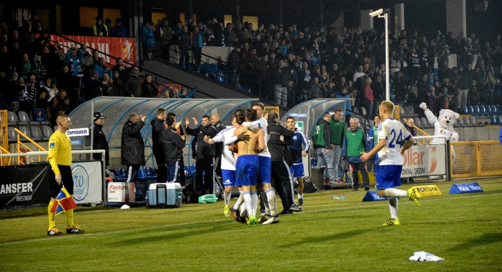 Zaraz po tym, kiedy spiker ogłosił, że sędzia przedłuża mecz o co najmniej cztery minuty, gospodarze przeprowadzili decydującą akcję, którą zaczął i skończył Damian Kądzior. Przerwało ją zamieszanie, po którym strzał z 10 metrów oddał Rafał Augustyniak. Paweł Florek zdołał odbić piłkę, ale przed siebie. Nadbiegający Damian Kądzior z bliska dobił ją do siatki.