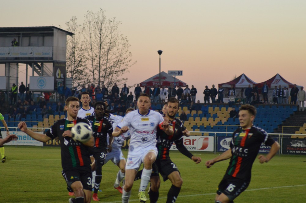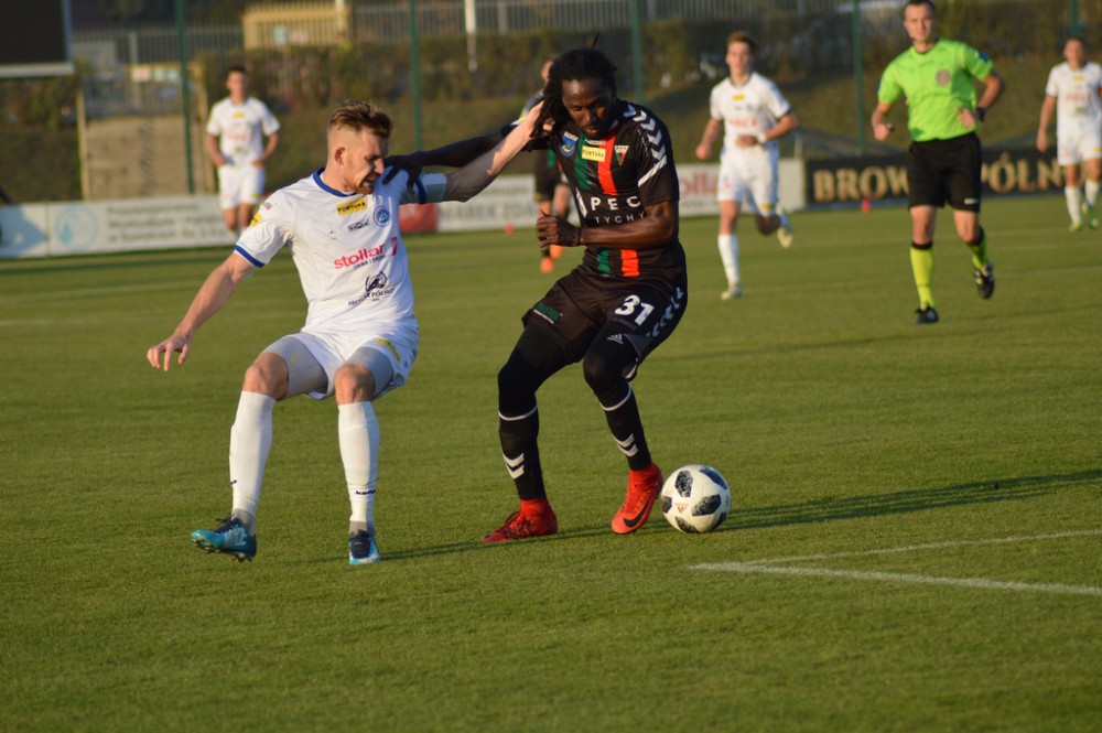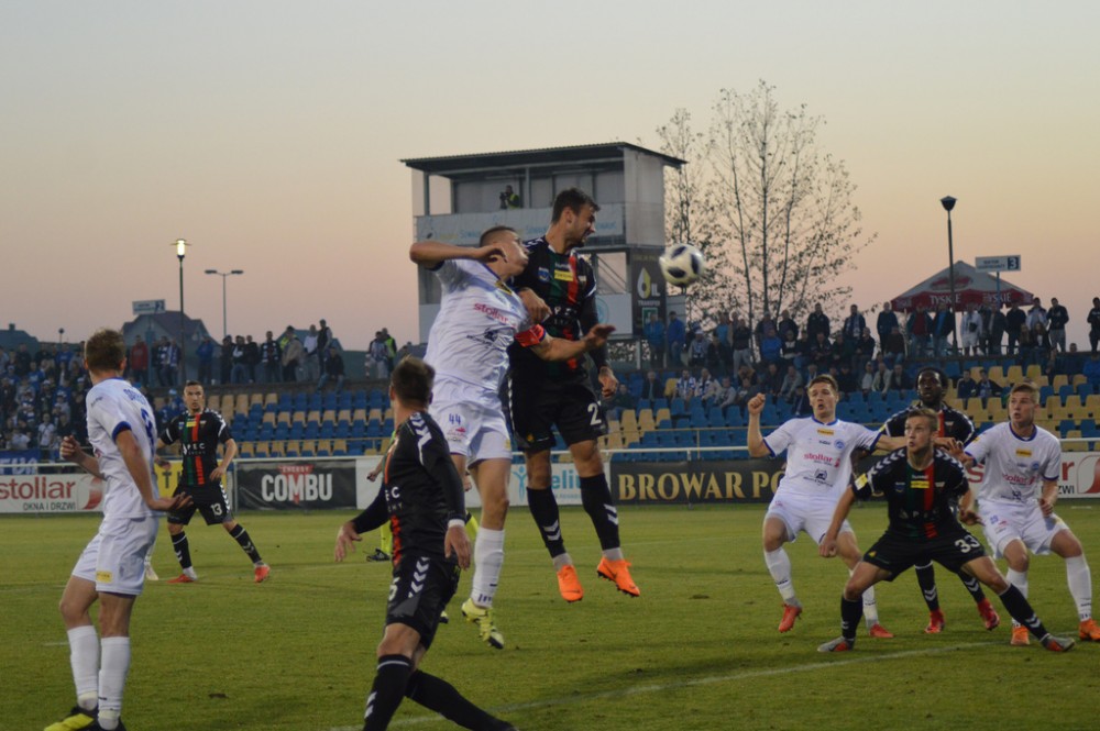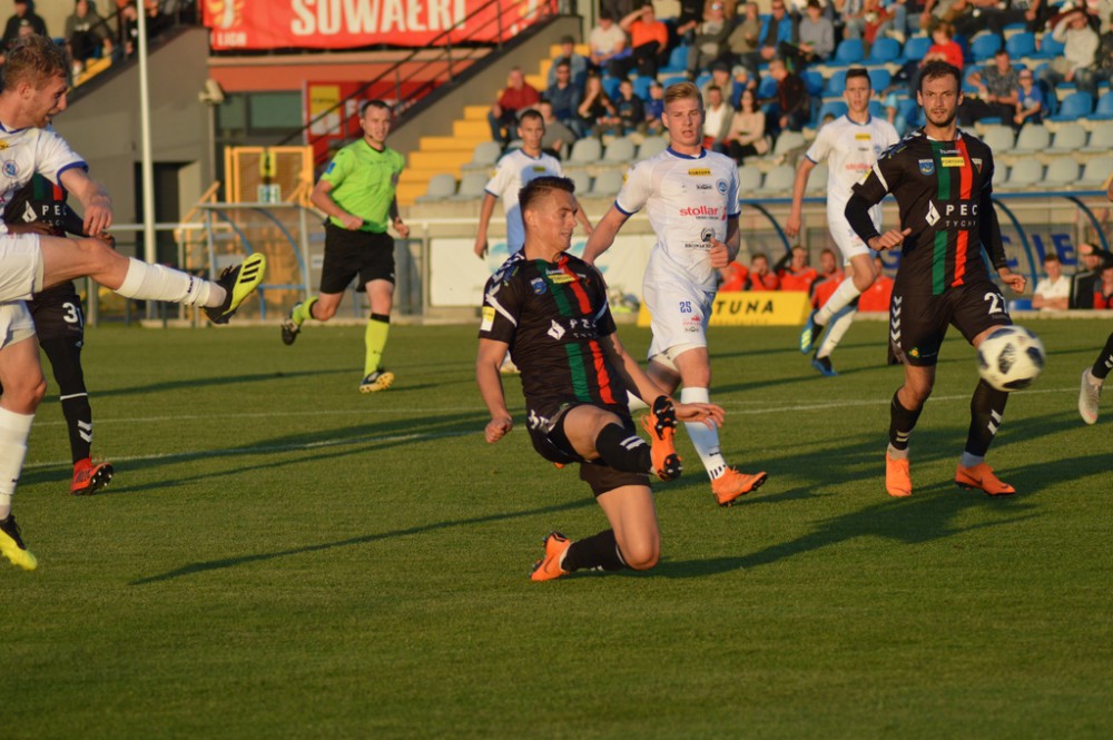 Szybko wyrównać mógł Karol Mackiewicz, ale dwa jego strzały zza pola karnego obronił Konrad Jałocha. Kibice oklaskami nagrodzili jeszcze świetny odbiór Damiana Pawłowskiego i wydawało się, że emocji w pierwszej połowie będzie na tyle, ale w 43 minucie Tychy prowadziły już 2:0.