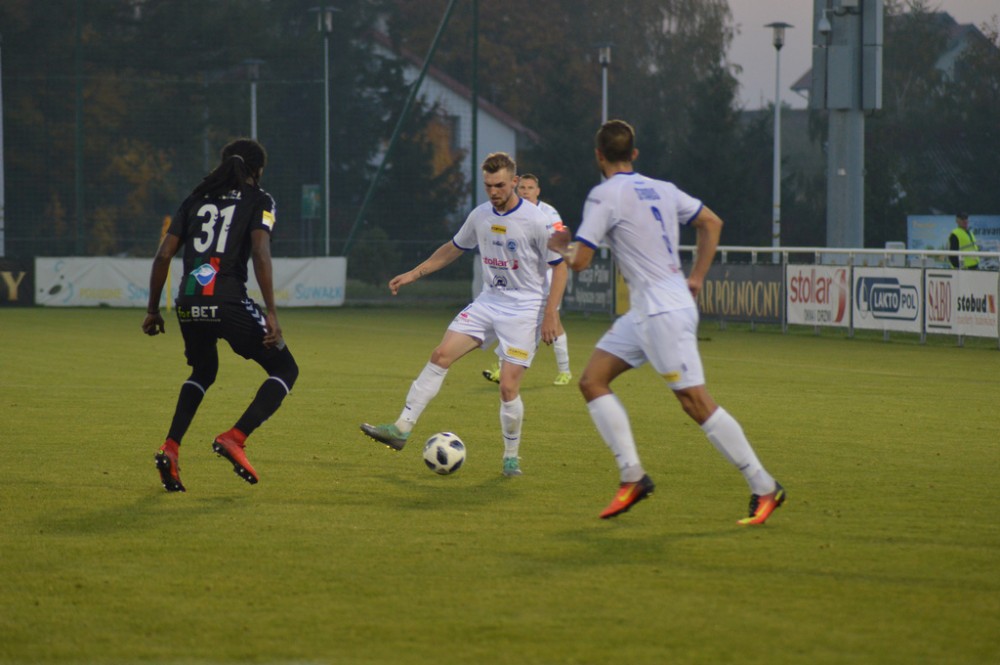 Od początku drugiej połowy grał już Jonatan Straus, wkrótce na boisko wbiegł Paweł Olszewski. Role się odwróciły, to gospodarze nadawali ton grze. Dwukrotnie mogli nadziać się jednak na ciosy, ale szanse podwyższenia wyniku na 3:1 zmarnowali Maciej Mańka i ...