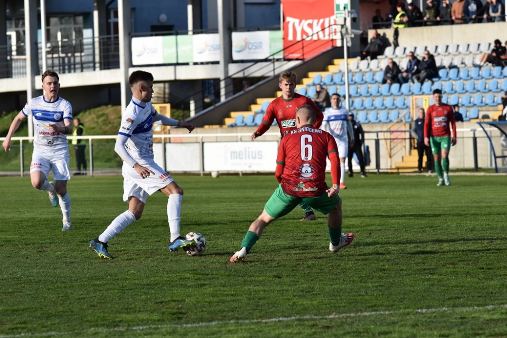 Drużyna ze Śniadowa zagęściła środek pola i szukała szans w strzałach z daleka. Po jednym z takich uderzeń w wykonaniu Karola Choińskiego, piłka poleciała tuż nad poprzeczką bramki Piotra Słowikowskiego.