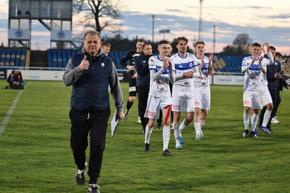 W czwartym w tym roku meczu przed własną publicznością Biało-Niebiescy odnieśli czwarte zwycięstwo i znowu nie stracili bramki. Wygrali z niżej notowanym KS-em Śniadowo, ale po mało porywającym meczu.
