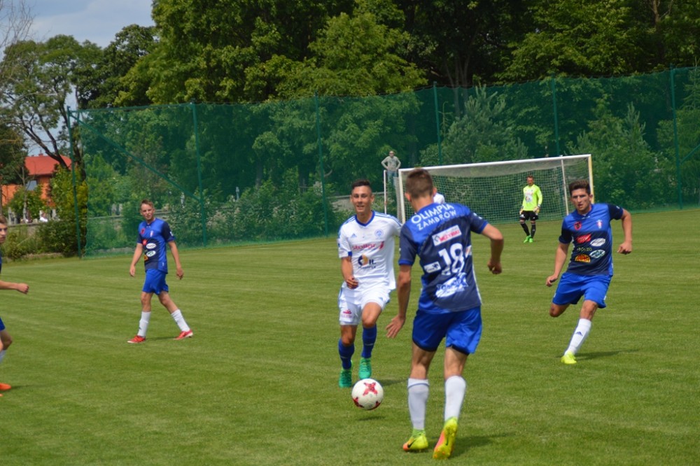 Przed przerwą groźnie uderzali Damian Gąska z ostrego kąta oraz Krzysztof Wołkowicz, który minimalnie chybił głową po wrzutce Malovicia. W poprzeczkę trafił Mateusz Radecki. Podobać się mogły akcje prawą stroną w wykonaniu Mateusza Spychały, kolejnego reprezentanta Polski U-19.