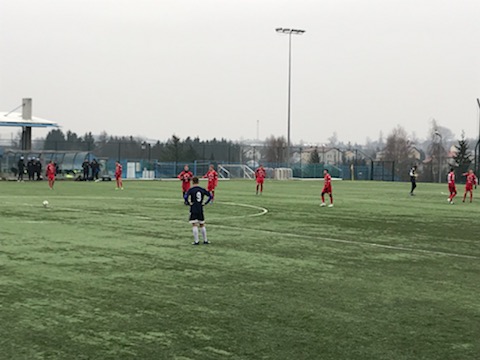 Na boisku ze sztuczną nawierzchnią stadionu w Zambrowie suwalski pierwszoligowiec rozgrywa pierwsze tej zimy sparingi. Na początek jest to dwumecz z rywalami z trzeciej ligi.