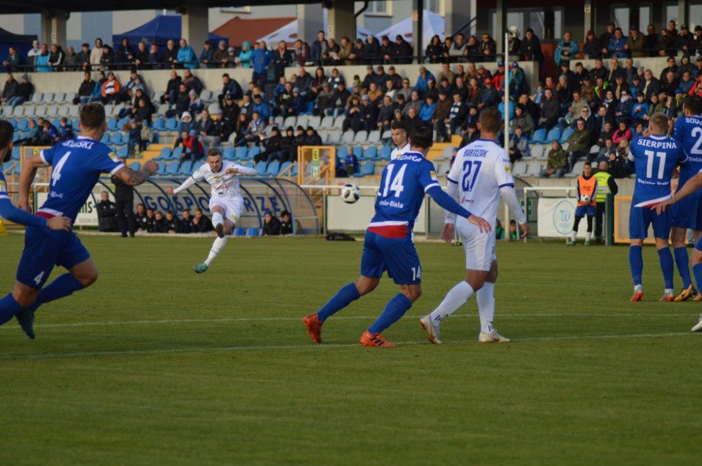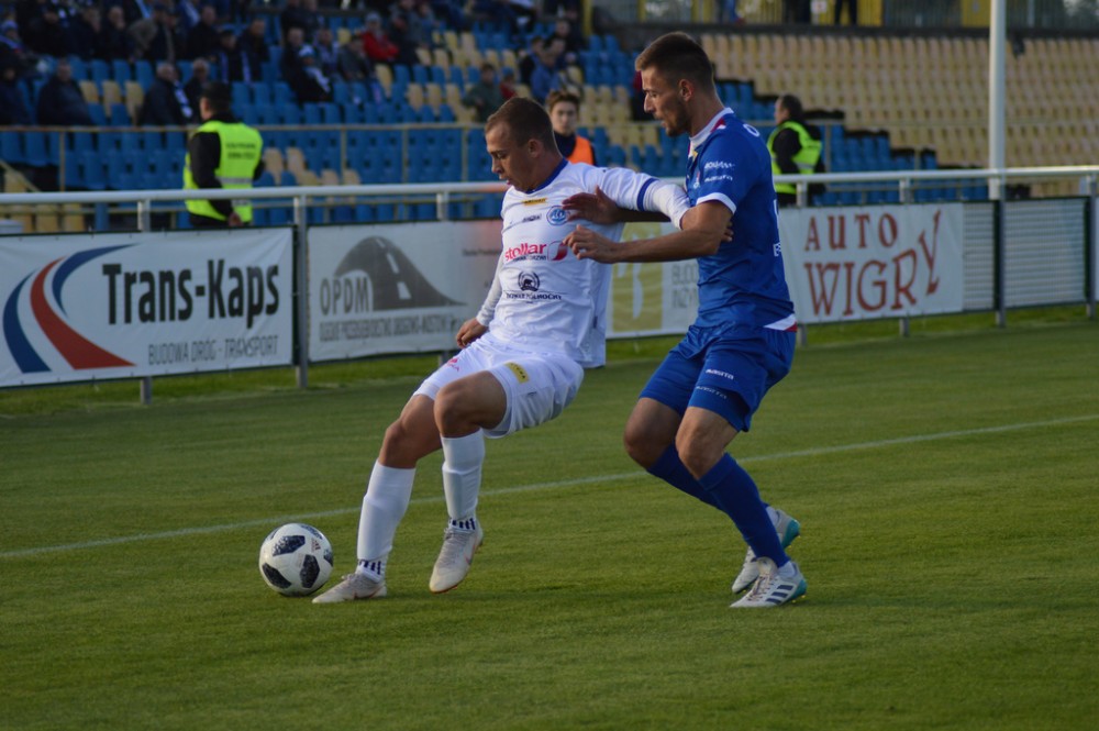 Zupełnie pozbawione już wiary Wigry odpowiedziały jedynie groźnym strzałem Martina Adamca, po którym Wojciech Fabisiak ładną paradą wybił piłkę na róg.
