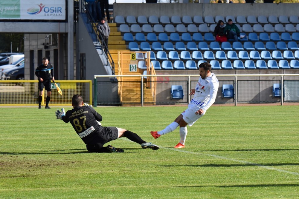 Po remisach z Warmią Grajewo i KS-em Wasilków, suwalska drużyna nareszcie wygrała u siebie z zespołem z czołówki. Zyskała nad Ruchem przewagę 4 punktów, a jak pokona w zaległym meczu Tur Bielsk Podlaski, ta różnica wzrośnie już do 7 oczek.