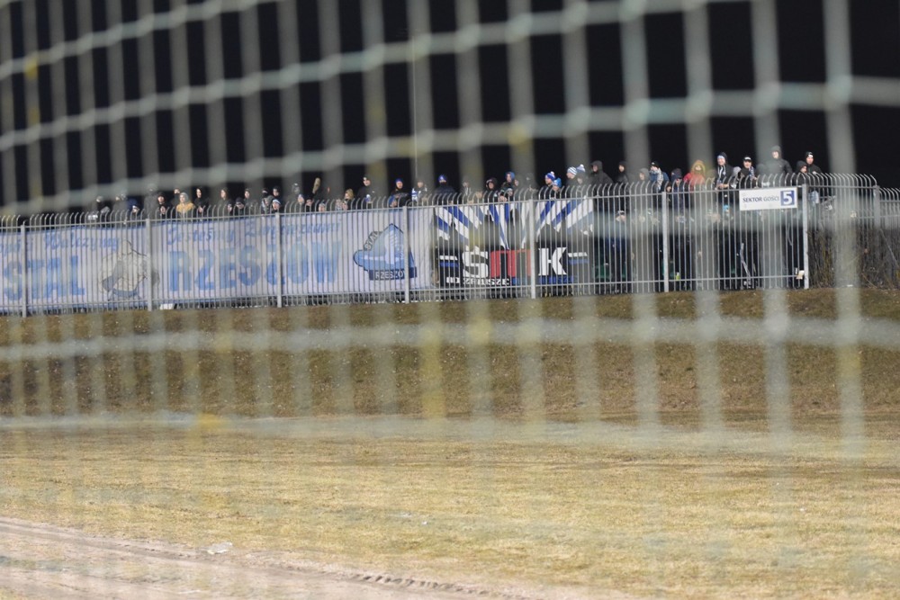 Tuż przed przerwą lider z Rzeszowa wyszedł na prowadzenie. Piłkę w polu karnym źle przyjął Kacper Piątek z czego mogła wyjść asysta, ale mocny strzał Bartłomieja Poczobuta z najbliższej odległości świetnie obronił Hieronim Zoch. Goście mieli rzut rożny i dośrodkowanie na swoje drugie trafienie w tym meczu zamienił Krzysztof Danielewicz. Dla ofensywnego pomocnika Stali był to 7. gol w rozgrywkach eWinner 2 Ligi.