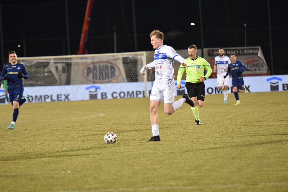 Biało-Niebiescy prowadzili z liderem 1:0, ale potem przegrywali 1:3 i wydawało się, że Stal Rzeszów wywiezie z Suwałk 3 punkty. Na szczęście, po golach w doliczonym czasie drużyna Grzegorza Mokrego doprowadziła do remisu.