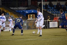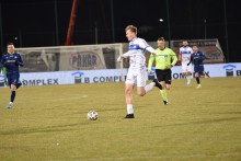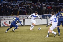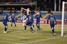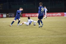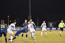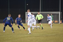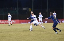 Biało – Niebiescy co raz bardziej naciskani niestety cofnęli się zbyt mocno, co wykorzystali gracze w granatowych strojach. W 37 minucie po płaskim dośrodkowaniu z lewego skrzydła do piłki dopadł Krzysztof Danielewicz i mocnym strzałem przy słupku doprowadził do wyrównania.