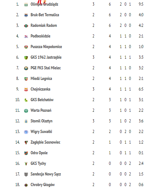W sobotę zagrają zespoły, ktore mają na koncie komplet dwóch zwycięstw. Bruk-Bet termalica Nieciecza podejmie Zagłębie Sosnowiec, spadkowicza z ekstraklasy, a Radomiak Radom wystapi w Bełchatowie.