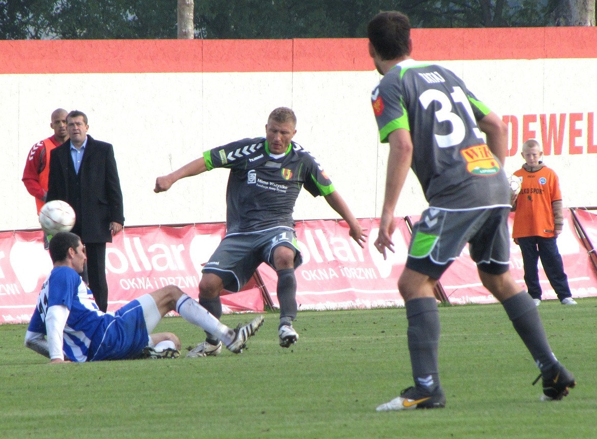 Na zdjęciu akcja z meczu 1/16 Pucharu Polski Wigry Suwałki - Korona Kielce 0:2 (21.09.2010)