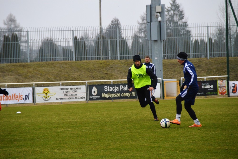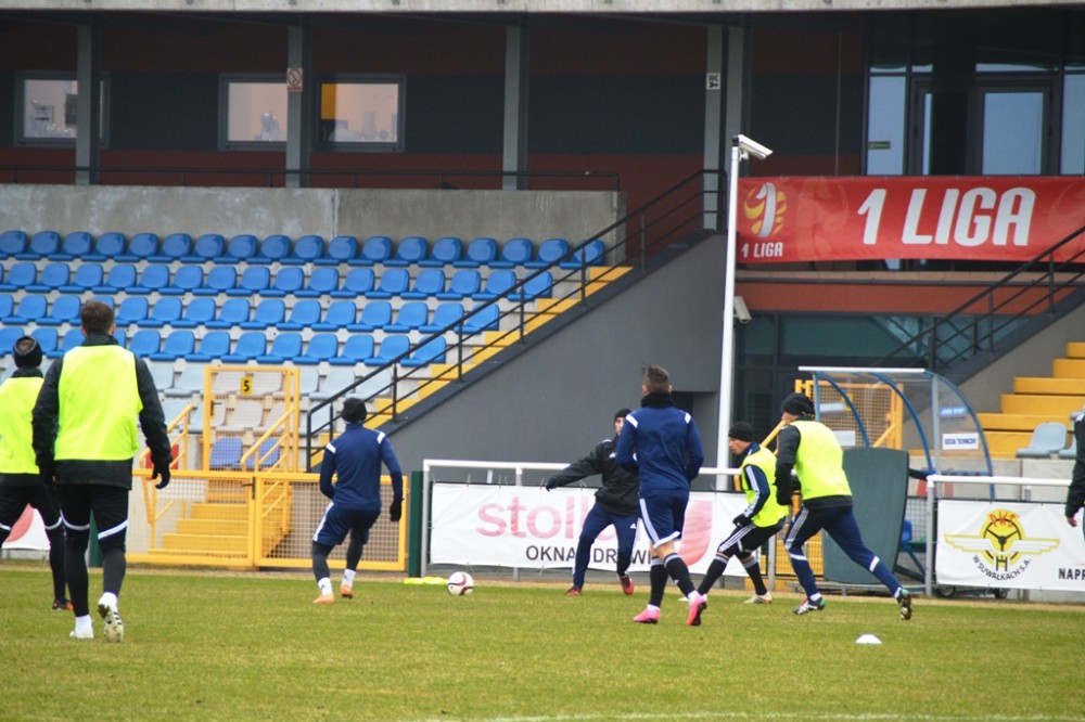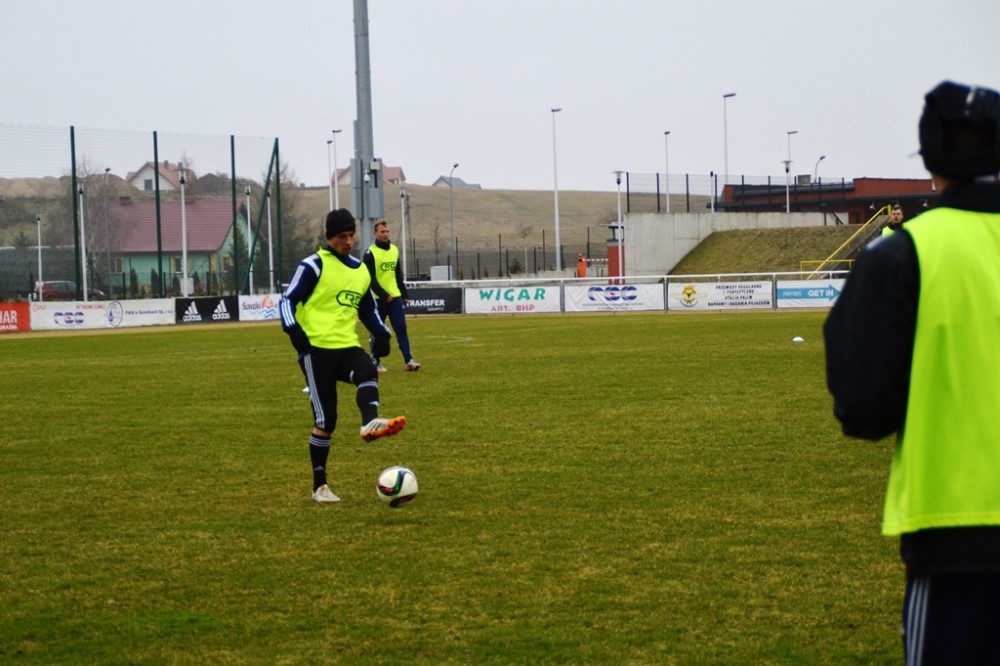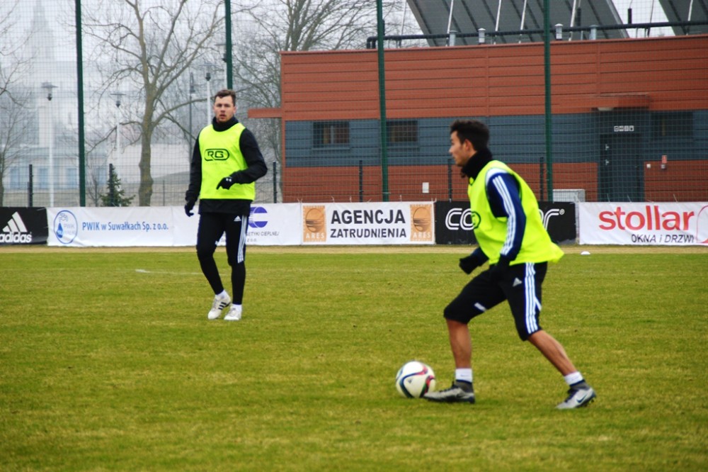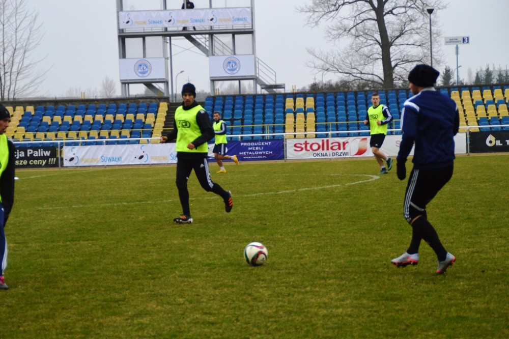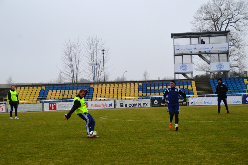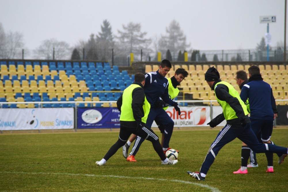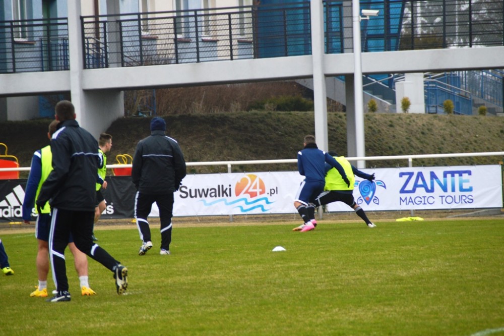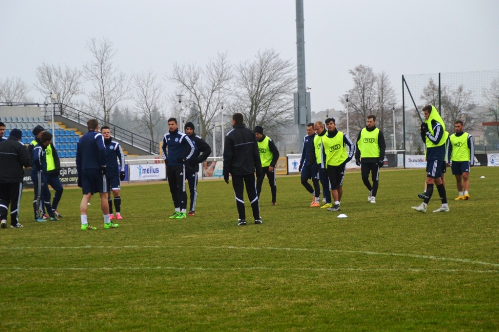 Oprócz wspomnianego Tomasza Jarzębowskiego, w Wigach nie zagra Maksims Rafalskis, a niepewny jest występ Damiana Gąski. Pozostałych 22 graczy z szerokiej kadry pierwszoligowca walczy o miejsce w składzie na mecz, w którym gospodarze zamierzają zdobyć pierwszą w tym roku bramkę i odnieść zwycięstwo, które zakończy serię ośmiu kolejnych porażek na własnym boisku. W czwartek suwalscy pierwszoligowcy trenowali na głównej płycie. Po sobotnich zajęciach pojadą zaś na minizgrupowanie do jednego z ośrodków nad jeziorem Wigry, na swój stadion wrócą dwie godziny przed najważniejszym meczem wiosny.