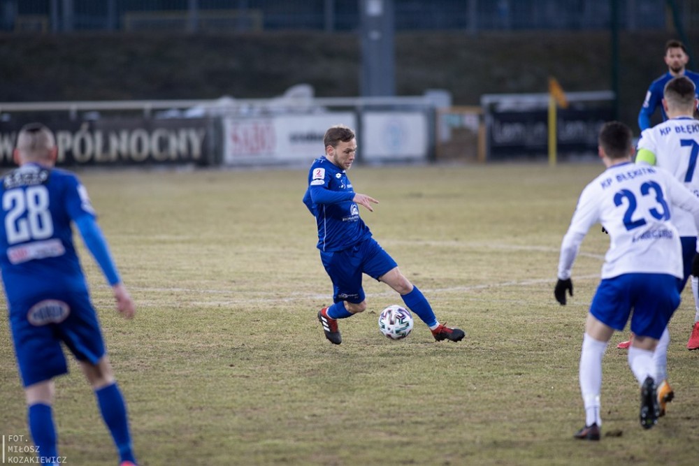 Po roszadach w składzie znów na moment zabrakło koncentracji i z piłką w nasze pole karne urwał się Damian Niedojad. Na nasze szczęście napastnik Błękitnych uderzył wysoko nad bramką Hieronima Zocha.