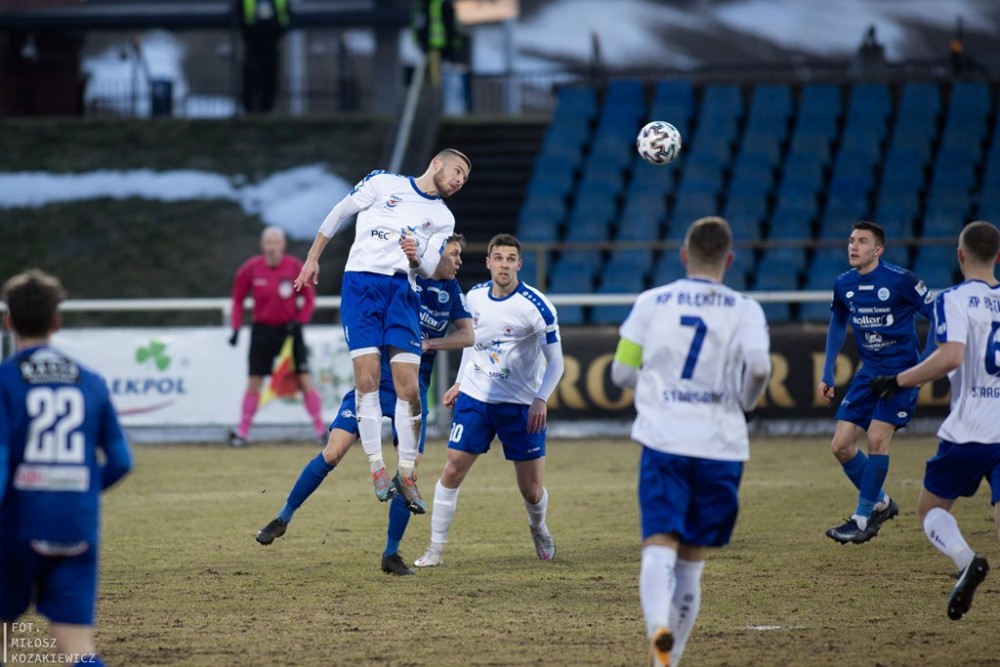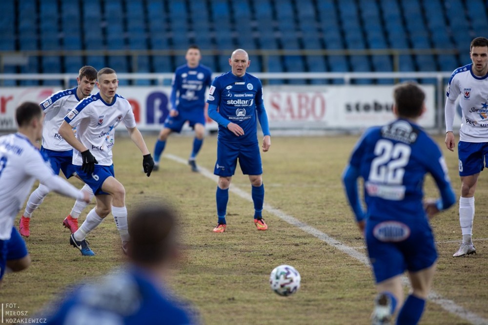 Szkoda, bowiem w tej kolejce pauzował lider z Katowic i w walce o awans mogliśmy zmniejszyć straty punktowe do jednego. Na domiar złego, 40 punktów na swoim koncie ma już Chojniczanka Chojnice, która tego wieczoru, chociaz przegrywała 0:1, pokonała innego spadkowicza – Olimpię Grudziądz 3:1. W tym meczu sędzia pokazał czerwoną i aż 11 żółtych kartek.