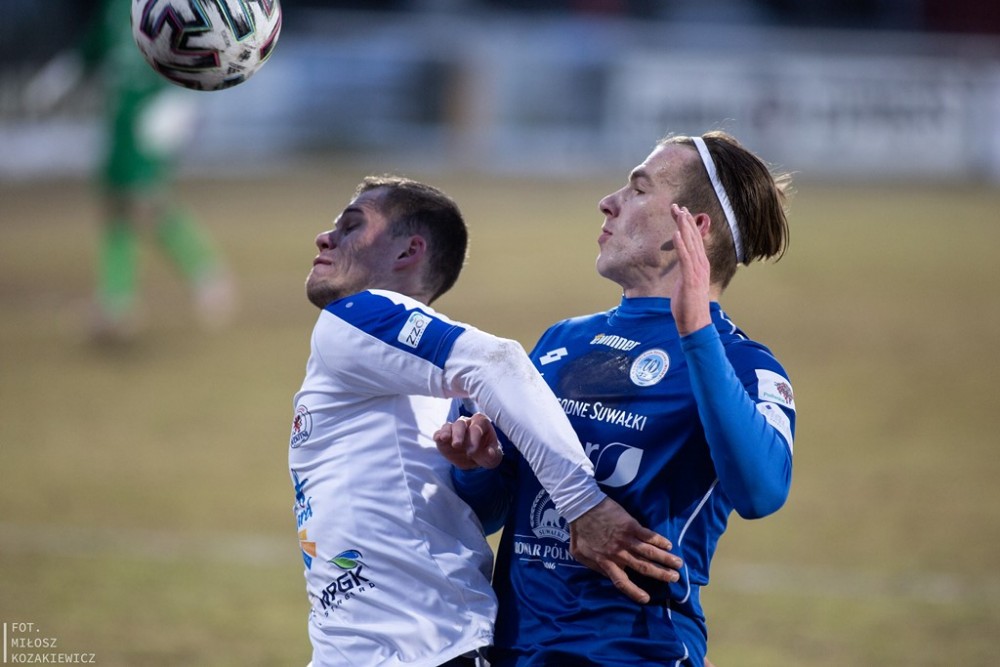 Mimo gry w osłabieniu suwalczanie wciąż atakowali. W 66 minucie po strzale z dystansu minimalnie pomylił się Patryk Czułowski. Jeszcze bliżej szczęścia był Kacper Wełniak, ale piłka po jego strzale głową przeleciała nieznacznie obok bramki.