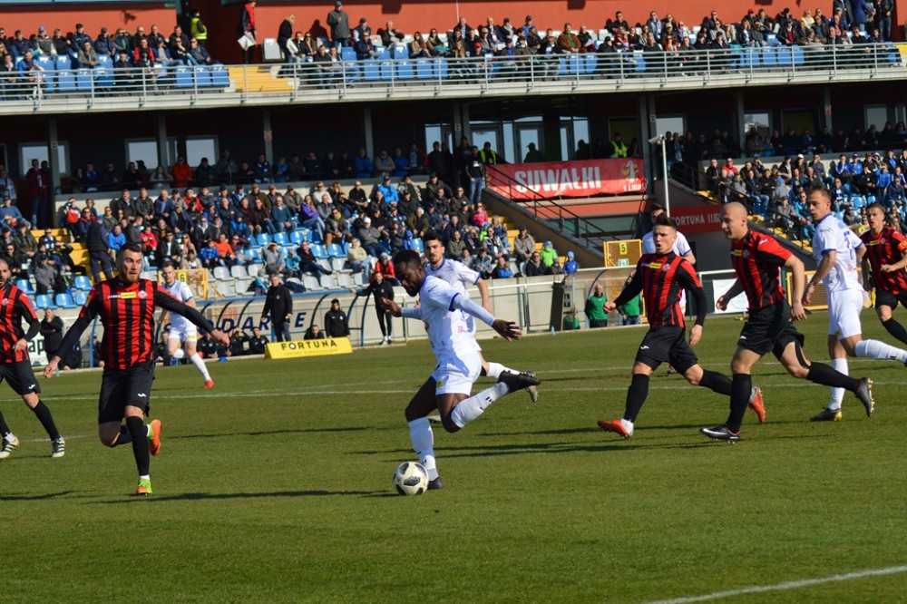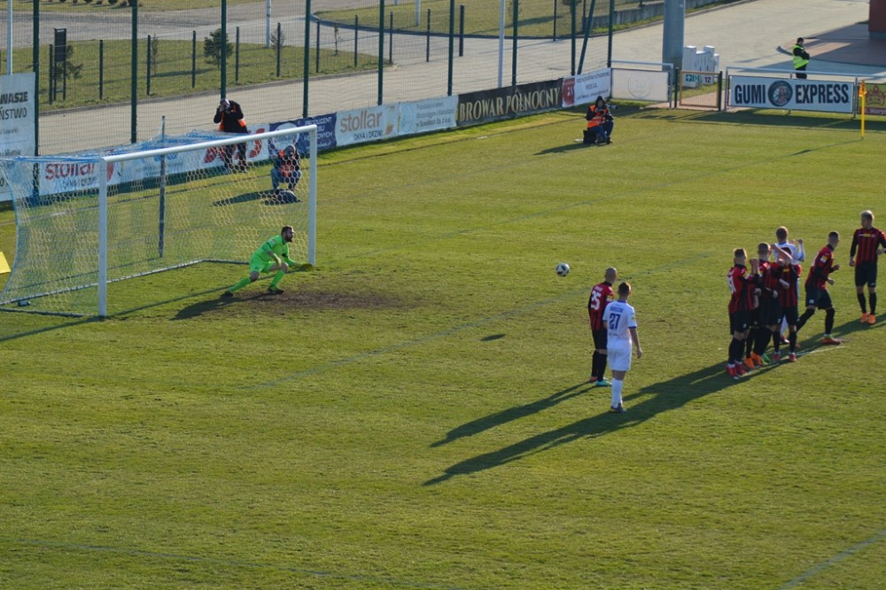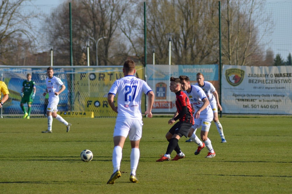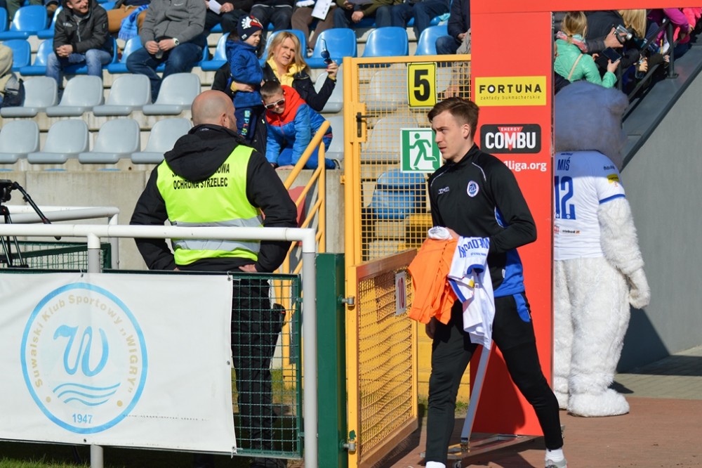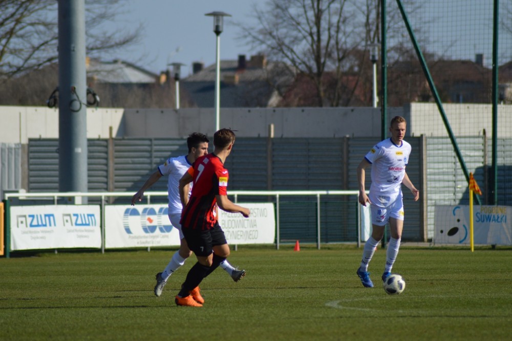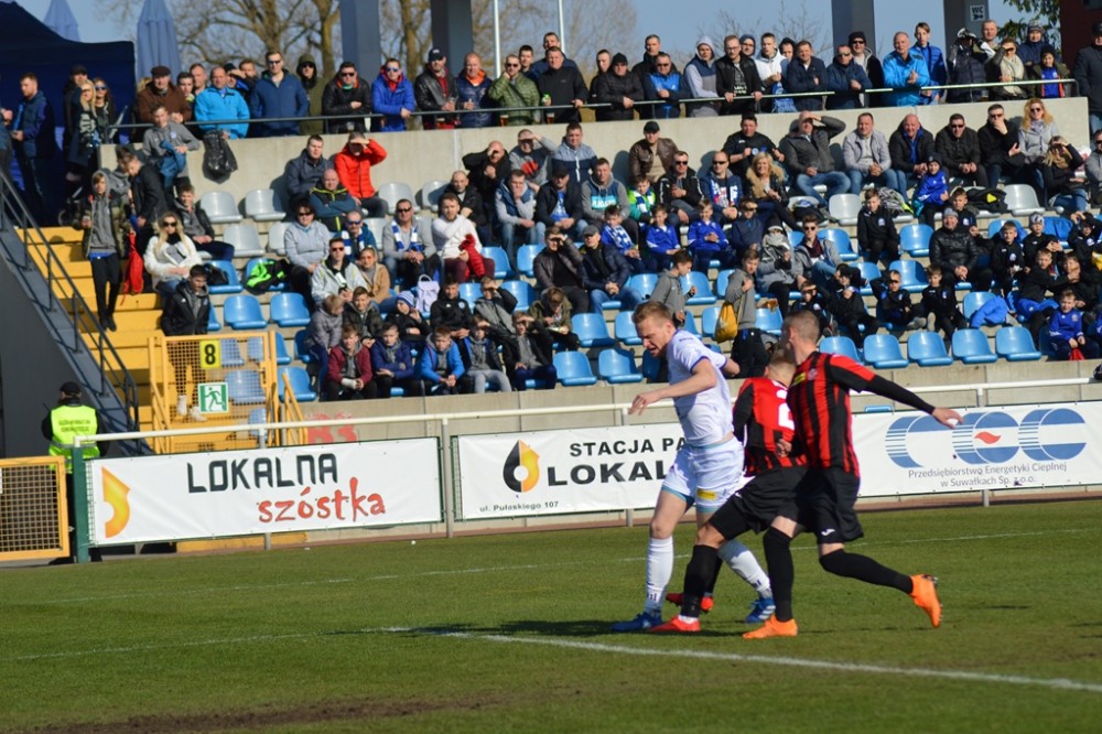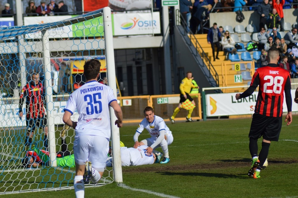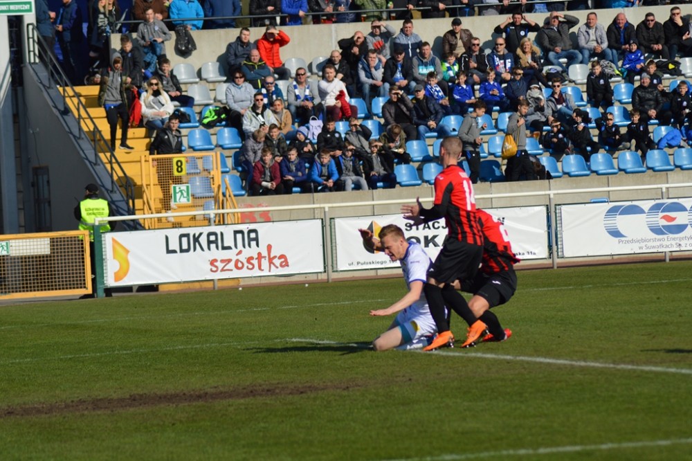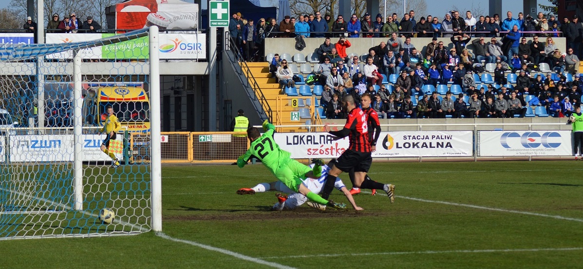 Najpierw jednak za ciosem próbowali próbowali pójść grający z poświeceniem piłkarze suwalskiej drużyny. Z dystansu mocno, ale w środek bramki huknął Dawid Polkowski, a po uderzeniu głowa Joela Huartasa bramkarz gości z trudem przeniósł piłkę nad poprzeczkę.