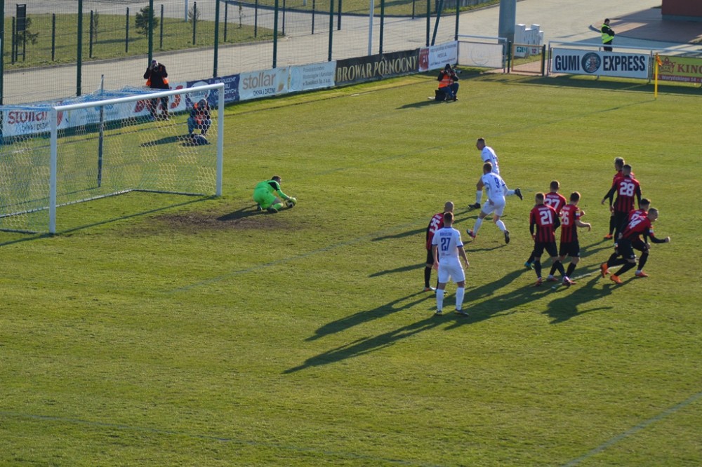 W 78. minucie meczu Szymon Sobczak (Stomil) nie wykorzystał rzutu karnego