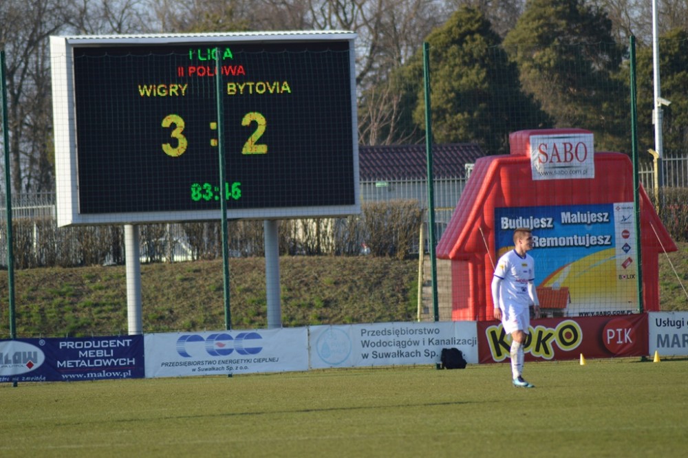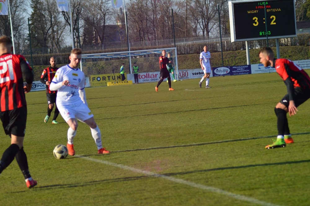 Po zdobyciu kontaktowego gola, Bytovia, w której niezły występ zaliczył były skrzydłowy Wigier Łukasz Moneta, napędzała akcje, a podopieczni Mirosława Smyły odgryzali się kontrami. Olbrzymie emocje ostudzili w drugiej z czterech doliczonych minut. Gola na 4:2 zdobył biegający za dwóch Robert Bartczak.