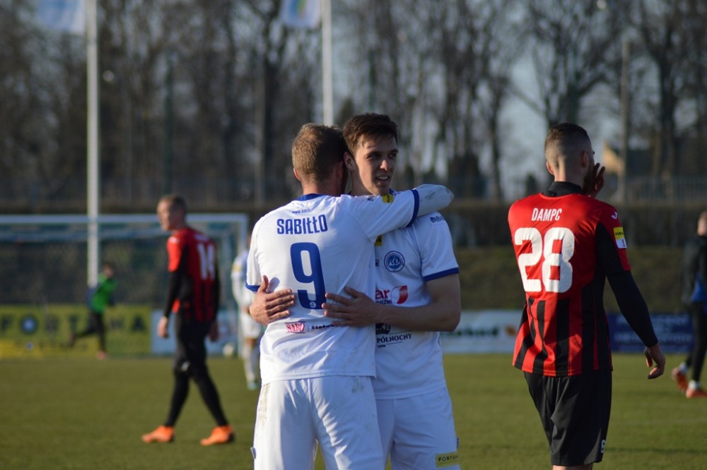 W porównaniu do poprzednika, nowy trener dokonał zmian w ofensywie. Od początku zagrali Dawid Polkowski i Karol Mackiewicz, w roli wysuniętego napastnika. Cały zespół zaczął szybko i agresywnie, a wypożyczeni z Jagiellonii Białystok pomocnicy odwdzięczyli się za zaufanie już w 7 minucie. Dawid Polkowski przedarł się lewą stroną, wrzucił na piąty metr, a Karol Mackiewicz odważnie wbiegł między dwóch stoperów i z bliska pokonał Andrzeja Witana.