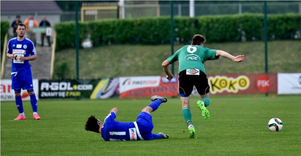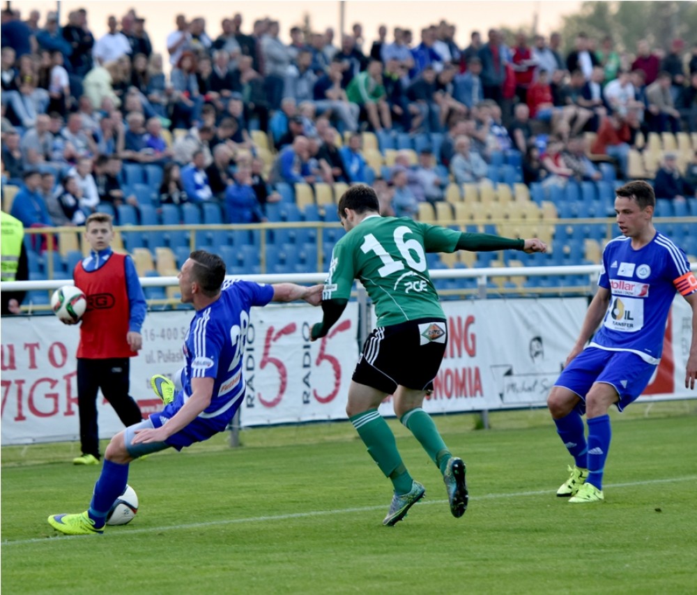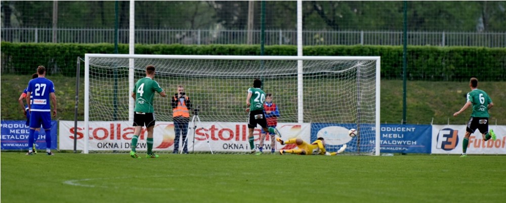 Trzy z czterech goli padły po rzutach karnych. Biało-niebiescy przegrywali 1:2, przez ostatni pół godziny grali bez wyrzuconego za druga żółta kartkę Bartłomieja Kalinkowskiego, a mimo to w końcówce byli bliżsi zwycięstwa.