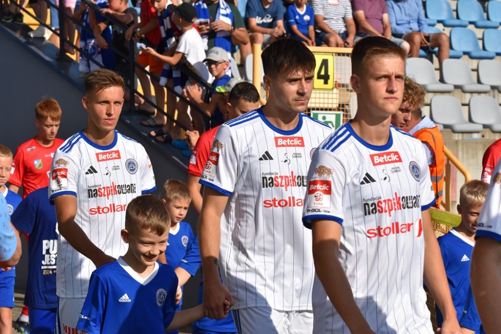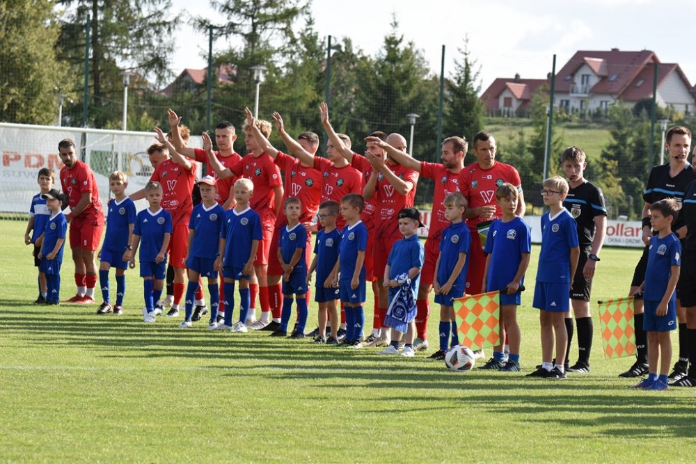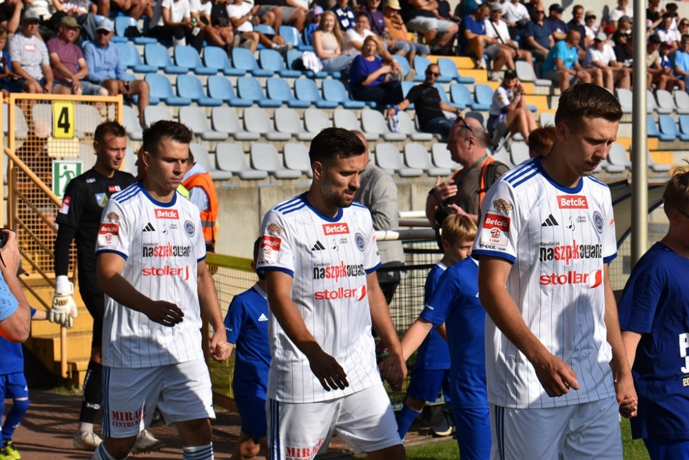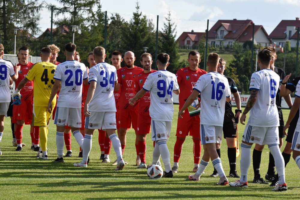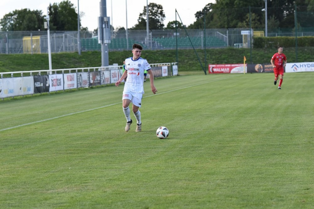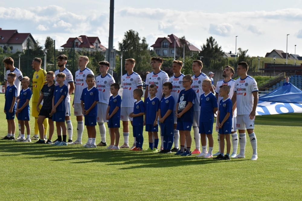 W porównaniu do wyjściowego składu, który wygrał IV ligę, w ekipie Biało-Niebieskich doszło do pięciu zmian. W bramce stanął Mateusz Taudul, który był zmuszony do ledwie trzech trudniejszych interwencji. Przed nim na bokach zagrali Nataniel Wybraniec i Eryk Matus, na środku pomocy dobrze sobie radził 17-letni Jakub Paszkowski, a w napadzie 19-letni Patryk Bednarczyk, który był bliski zdobycia jednego gola w pierwszej połowie i przynajmniej dwóch w doliczonym czasie, kiedy w sytuacji sam na sam trafił w bramkarza, a następnie uderzył głową nad poprzeczką.