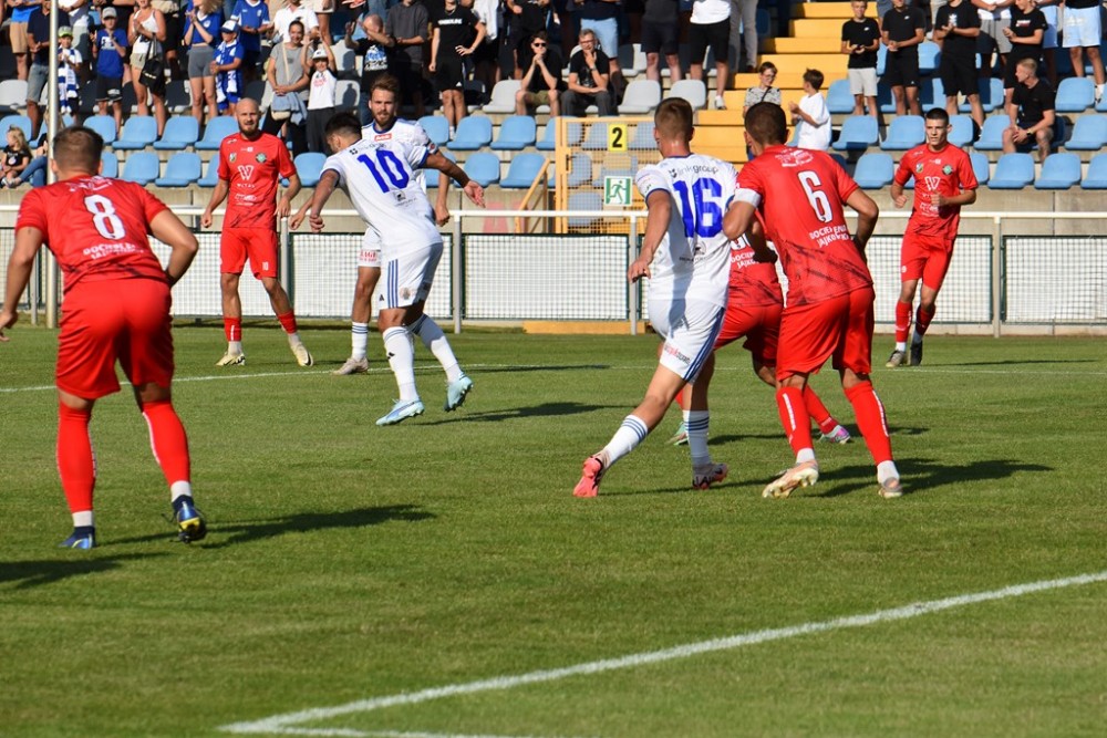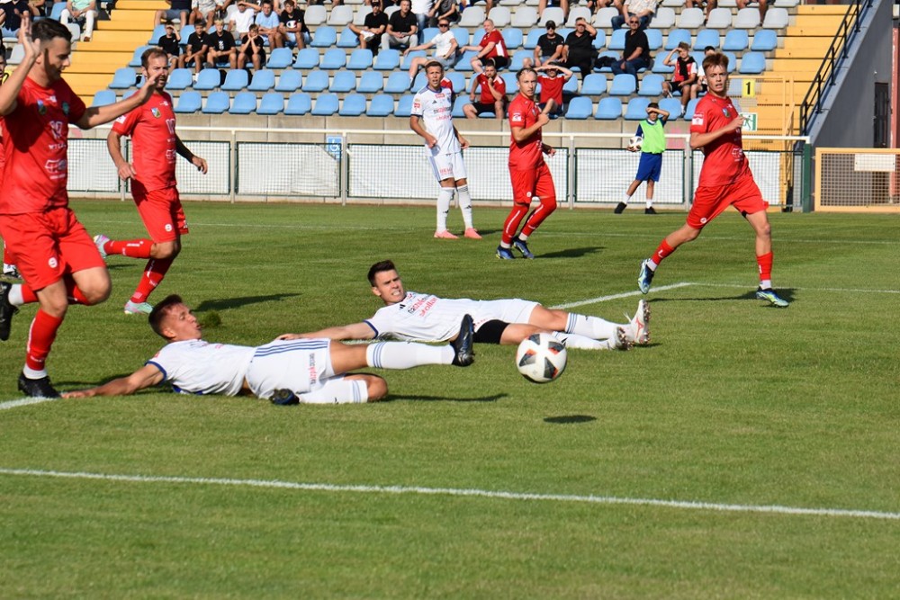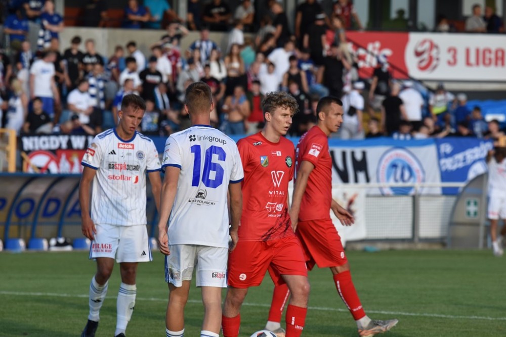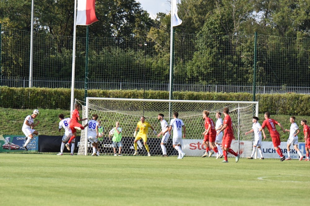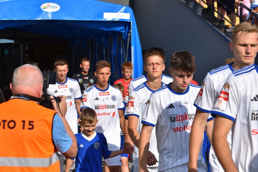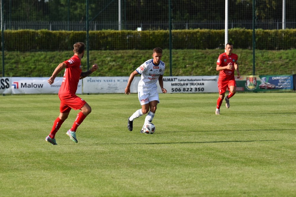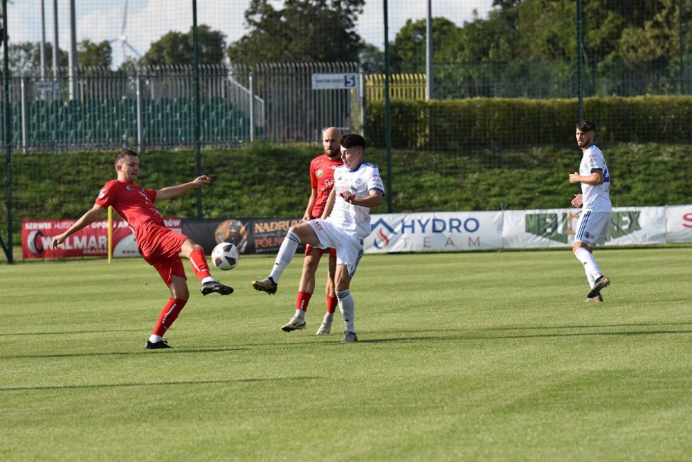 W porównaniu do wyjściowego składu, który wygrał IV ligę, w ekipie Biało-Niebieskich doszło do pięciu zmian. W bramce stanął Mateusz Taudul, który był zmuszony do ledwie trzech trudniejszych interwencji. Przed nim na bokach zagrali Nataniel Wybraniec i Eryk Matus, na środku pomocy dobrze sobie radził 17-letni Jakub Paszkowski, a w napadzie 19-letni Patryk Bednarczyk, który był bliski zdobycia jednego gola w pierwszej połowie i przynajmniej dwóch w doliczonym czasie, kiedy w sytuacji sam na sam trafił w bramkarza, a następnie uderzył głową nad poprzeczką.
