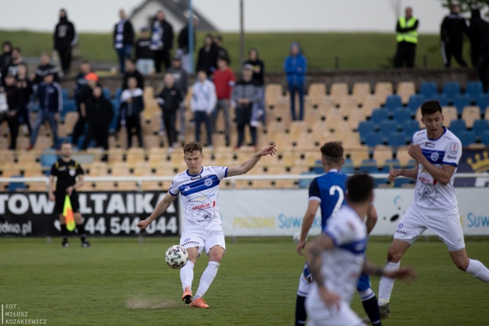 W drugiej części spotkania Wigry napierały, ale nie miały już tylu doskonałych okazji strzeleckich. Nieco odważniej w 53 i 54 minucie zaatakowali goście. Najpierw niecelnie uderzył Jakub Białczyk, a chwilę później minimalnie nad poprzeczką przestrzelił Jakub Karbownik.