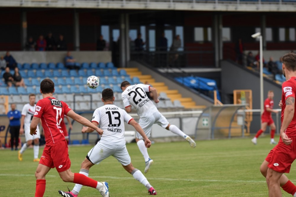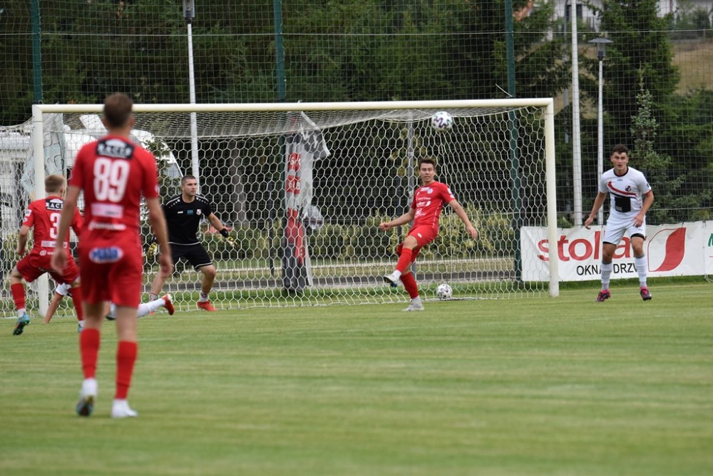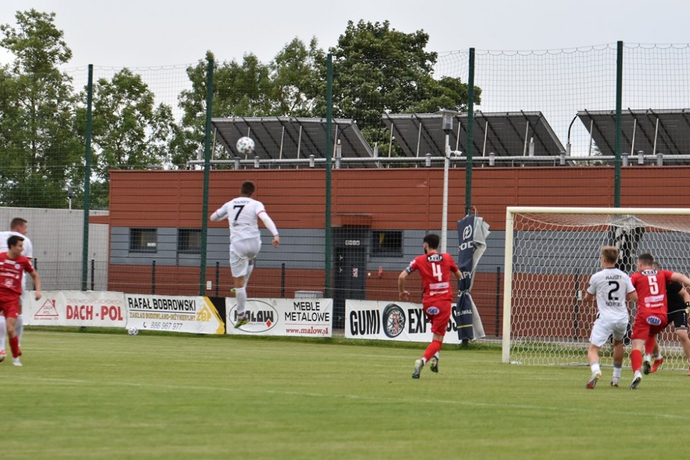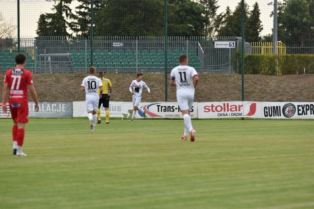 Po godzinie gry Wigry mogły wyrównać. Mocne uderzenie Łukasza Trąbki z prawej strony pola karnego z trudem obronił golkiper przyjezdnych.