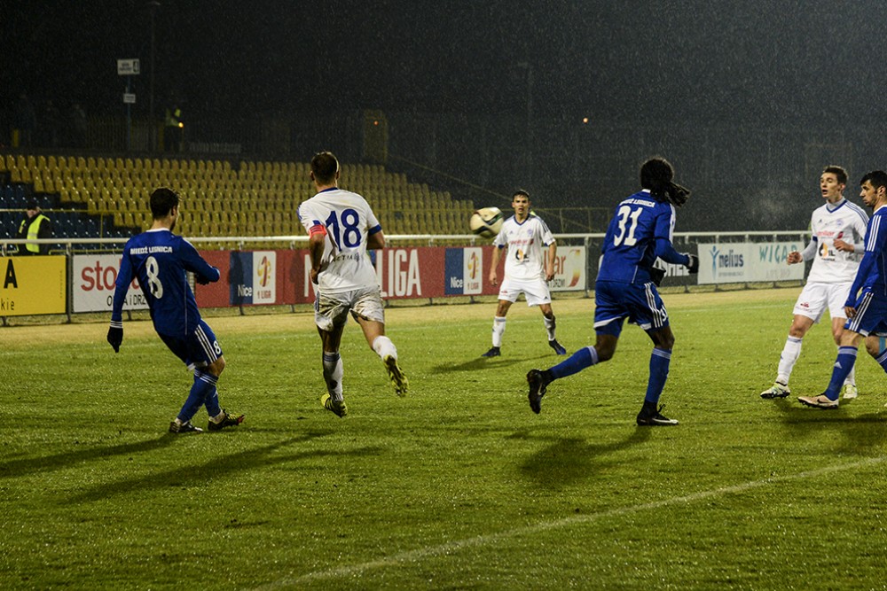 Biało-niebiescy nie wykorzystali okazji na objęcie pozycji wicelidera, przerwali serię pięciu kolejnych zwycięstw. Przez nieskuteczność przegrali wyrównany mecz z Miedzią i spadli na piąte miejsce w tabeli.