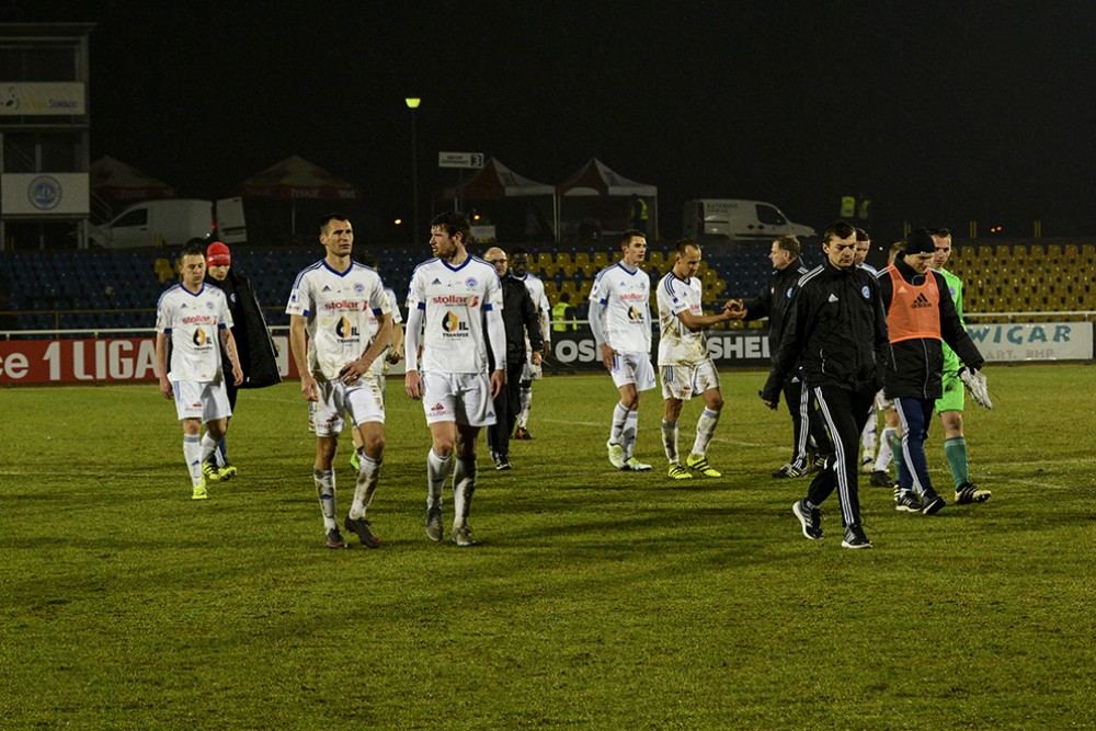 - Mało drużyn zdobywa w Suwałkach trzy punkty, a nam się to udało – cieszy się Ryszard Tarasiewicz. – Do zasługa dobrej organizacji gry. Oprócz tej jednej sytuacji Kozaka, nasza obrona nie dała się zaskoczyć. Mecz nie był jednostronny, z optycznej przewagi gospodarzy niewiele wynikało. Wigry także poprawiły organizację gry, nie dopuszczały do zagrożenia pod własną bramką. Tym bardziej cieszą trzy punkty zdobyte w Suwałkach.