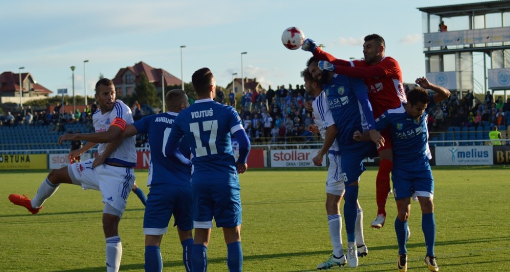 Paweł Kapsa nie dał się też pokonać wprowadzonemu na plac 20 minut przed zakończeniem meczu Karolowi Mackiewiczowi. Kolejny jagiellończyk w suwalskiej ekipie ożywił ofensywę, ale wymiernych efektem jego ataków były żółte kartki dla falujących go Rafała Augustyniaka i Jakuba Vojtusia.