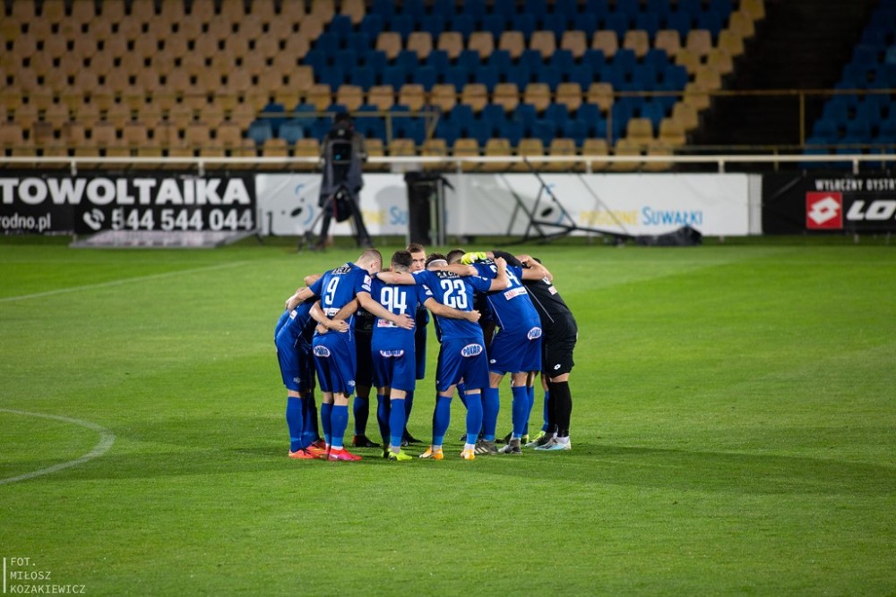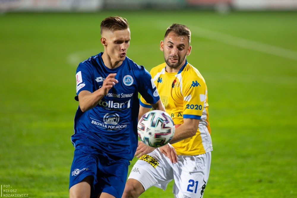 Jedyną bramkę w suwalskim spotkaniu zdobył w 63 minucie Kacper Wełniak, który wpakował piłkę głową po dośrodkowaniu z rzutu rożnego. Dla Biało-Niebieskich było to 5. zwycięstwo z rzędu i 6. w obecnych rozgrywkach.