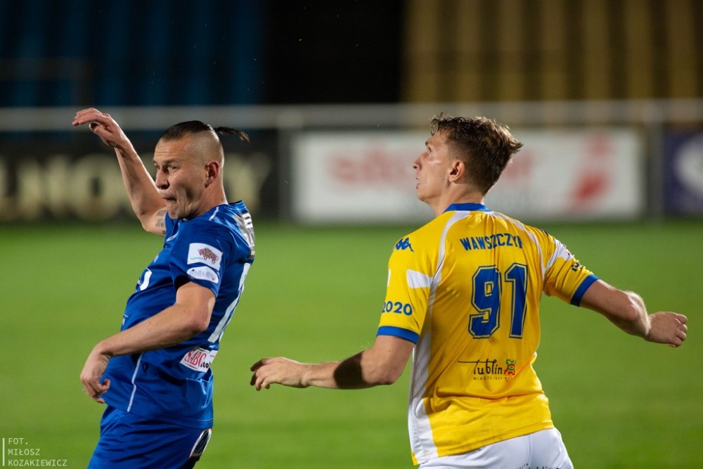 Wigry rozpoczęły ten mecz z przytupem. Już po pierwszym rajdzie Denisa Gojki pomocnik Wigier mógł otworzyć wynik meczu, ale strzał z ostrego kąta świetnie wybronił stojący tym razem między słupkami Sebastian Madejski, a nie jak do tej pory znany z boisk Ekstraklasy i jej zaplecza Seweryn Kiełpin. Goście z Lublina odpowiedzieli dośrodkowaniem z prawego skrzydła i na nasze szczęście niecelnym strzałem głową Rafała Króla. W 9 minucie, znów przed szansą stanął Denis Gojko i po jego uderzeniu z 18 metra piłka przeleciała minimalnie nad bramką. Podopieczni Mirosława Hajdo przetrwali ataki Wigier i z biegiem czasu starali się utrzymywać przy piłce tworząc akcje przed polem karnym, a interwencje Hieronima Zocha polegały głównie na łapaniu dośrodkowanych piłek przez Piotra Ceglarza i Rafała Króla. Spotkanie się wyrównało i toczyło w środkowej strefie boiska. Do przerwy żadna z drużyn nie potrafiła stworzyć groźnej sytuacji, którą dałoby się zamienić na zdobycz bramkową.