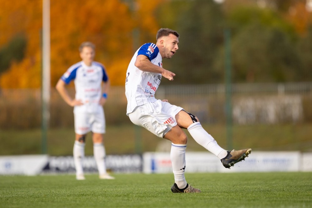 Zadanie jak najbardziej do wykonania. Na falę wznoszącą Wigry wpłynęły dwa tygodnie temu jeszcze pod wodzą Pawła Cimochowskiego, kiedy pokonały Lechię Tomaszów Mazowiecki 3:0 (na zdjęciu Kacper Głowicki, autor jednej z bramek. Potem ekipę Biało-Niebieskich przejął Arkadiusz Szczerbowski i poprowadził ją do zwycięstwa z Mławianką w Mławie 2:1.