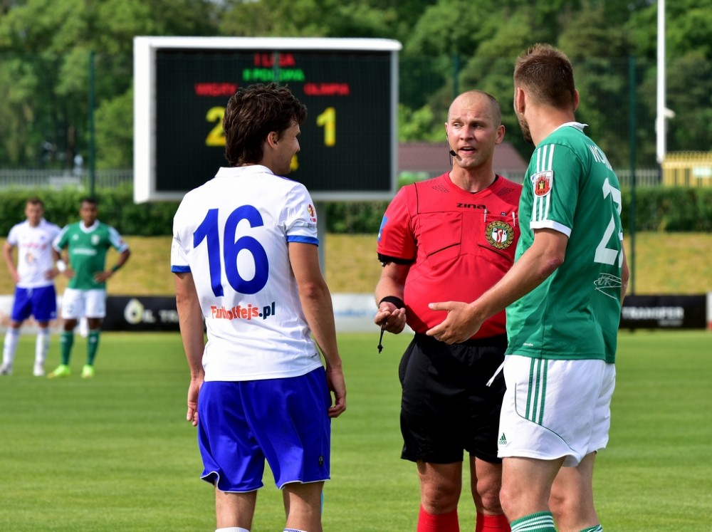 Żółte kartki: Kalinkowski (Wigry), Kaczmarek, Banasiak (Olimpia). Sędziował: Konrad Gąsiorowski (Biała Podlaska). Widzów: 2200.