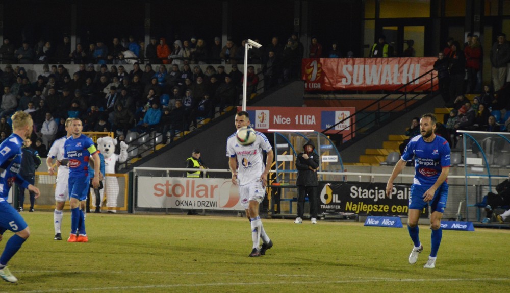 Suwalczanie dosyć pewnie ograli spadkowicza z ekstraklasy i tracą już nie sześć, a tylko cztery punkty do wicelidera. W tabeli wspięli się tuż za podium, bo wyprzedzające ich zespoły zremisowały bądź poprzegrywały.