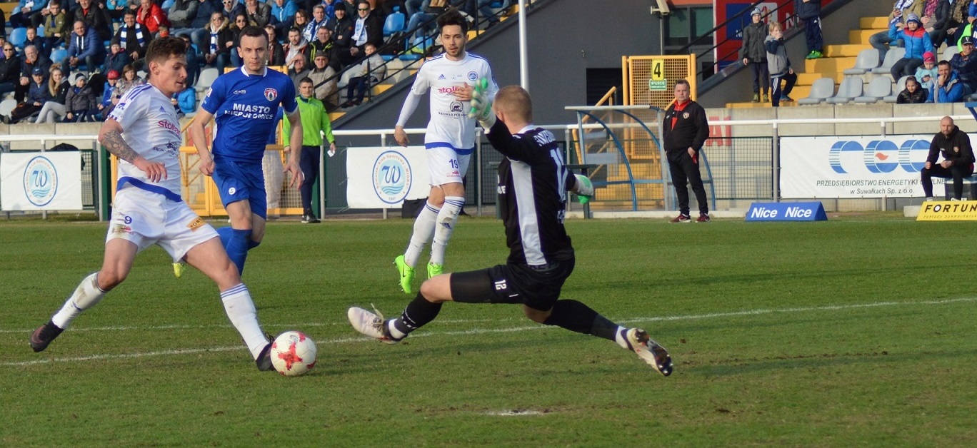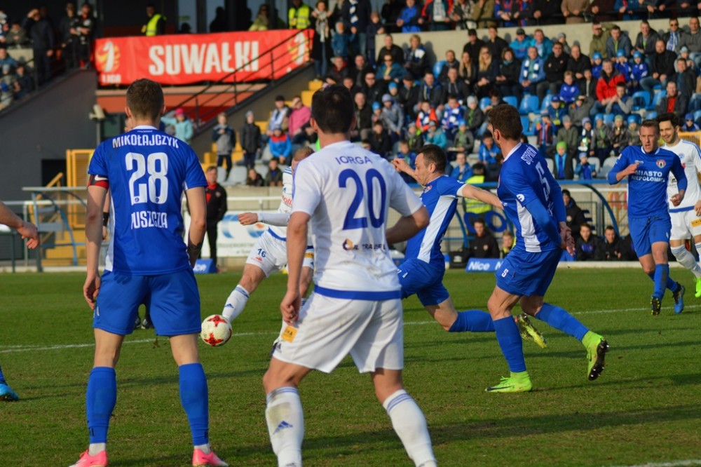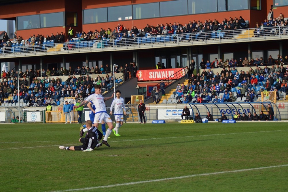 Patryk Klimala zrewanżował się Sokołowskiemu po przerwie, ale pomocnik trochę lepiej grającego w tej części suwalskiego zespołu huknął tuż obok słupka. W innej akcji Laurentiu Iorga ładnie wypuścił Klimalę, ten trafił do siatki przy dalszym słupku, ale był na spalonym.