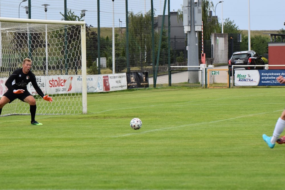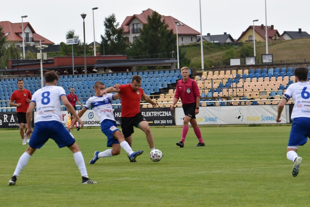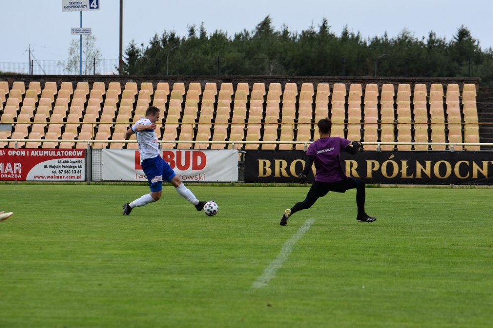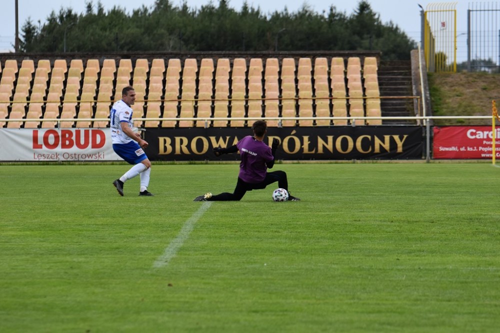 Wigry wyrównały już w 12 minucie, kiedy rzut karny bezbłędnie wykorzystał ostatnio grający w Olimpii Zambrów 31-letni Kamil Zalewski. Po przerwie bramkostrzelny napastnik zaliczył asystę. Podał do Bartosza Gużewskiego, który technicznie przymierzył w kierunku dalszego słupka i w 55 minucie dał Wigrom prowadzenie 2:1.