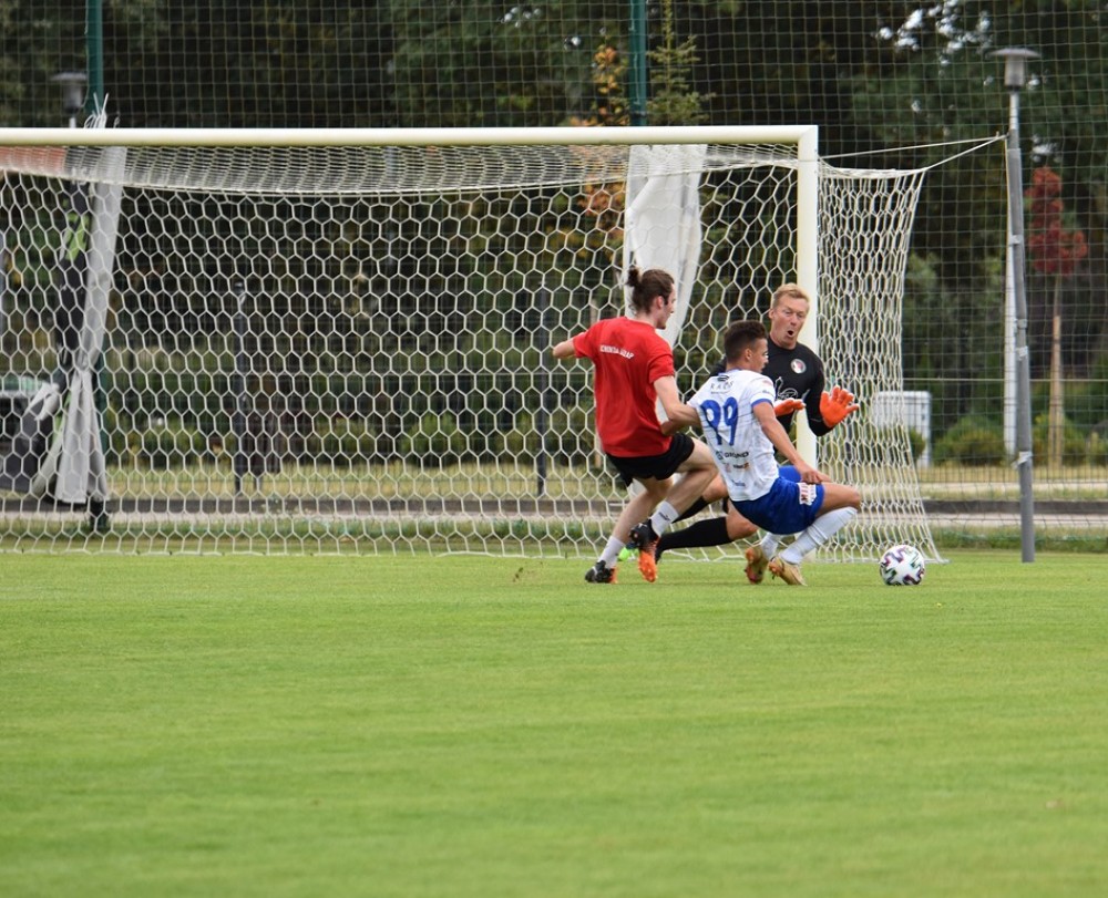 Biało-Niebiescy mogli wygrać jeszcze wyżej, ale pecah miał Mariusz Bucio, a w 90 minucie Paweł Omilianowicz huknął w poprzeczkę.
