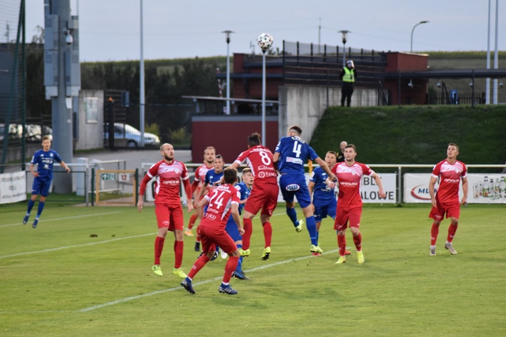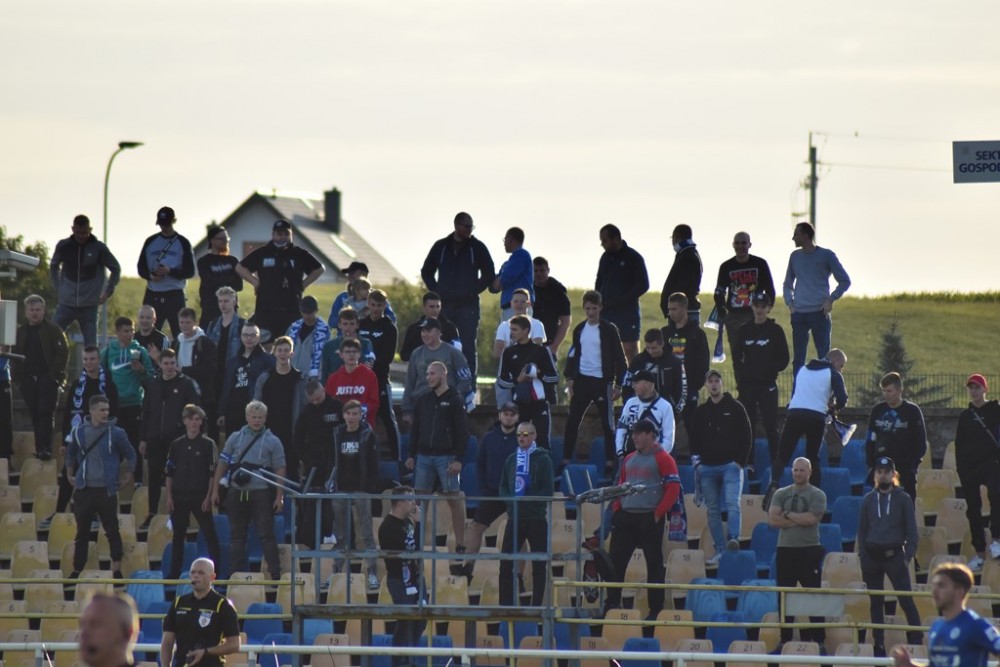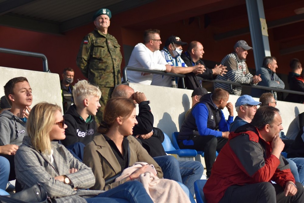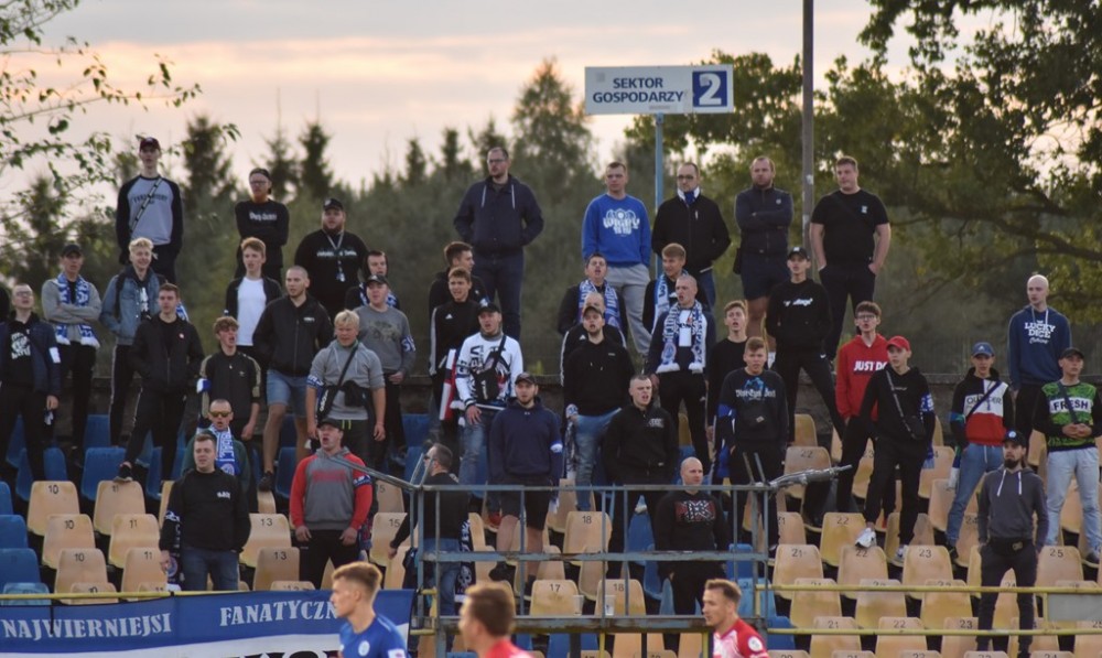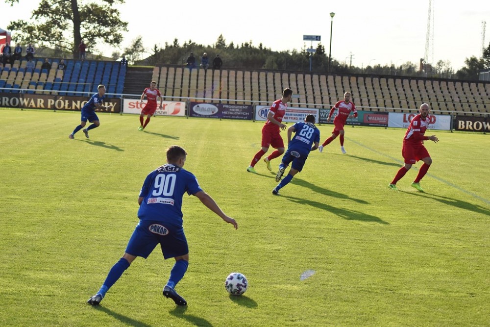 Biało–Niebiescy po porażce 0:1 w Stargardzie z Błękitnymi, do tego spotkania wyszli z bojowym nastawieniem, wysokim pressingiem, by zaatakować rywala od pierwszych minut. Dwukrotnie strzałami z dystansu próbował wystraszyć golkipera gości Patryk Czułowski, a w boczną siatkę bramki z rzutu wolnego trafił Bartłomiej Babiarz.
