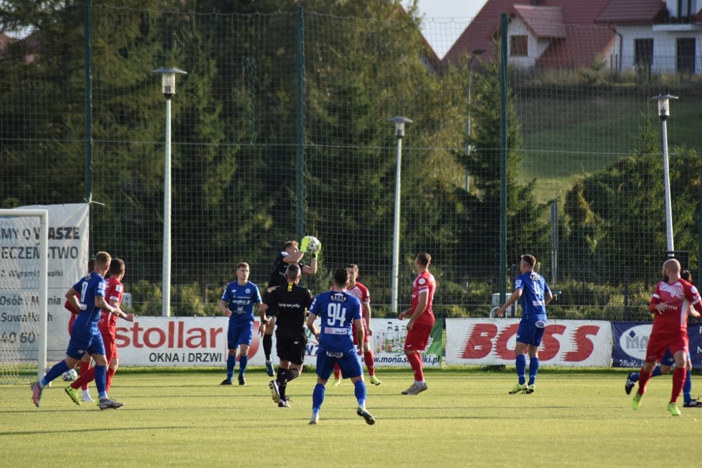 Gospodarze losy meczu mogli zamknąć znacznie wcześniej, gdyby do gry nie wkradła się nerwowość. Na szczęście zimną krew pod bramką Skry zachował doświadczony i doskonale znany w Suwałkach pozyskany tego lata 31 letni Kamil Adamek.