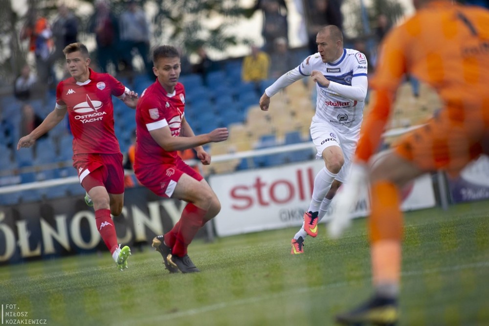 Gole: Artur Pląskowski 18, Szymon Skrzypczak 32 i 45+1, Łukasz Wolsztyński 40, Mateusz Klichowicz 66 – Wojciech Łuczak 41