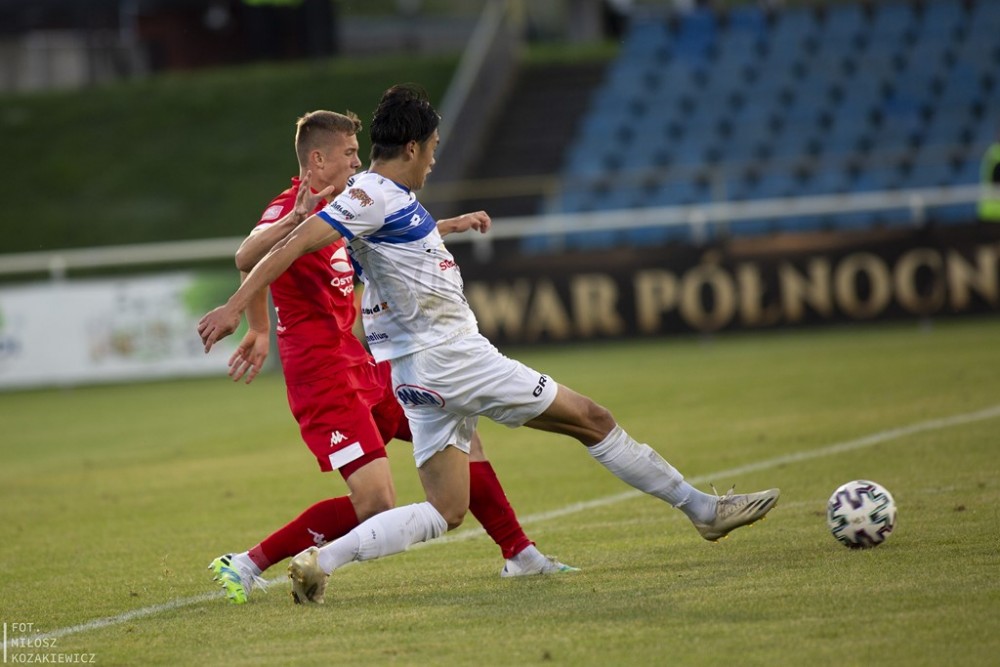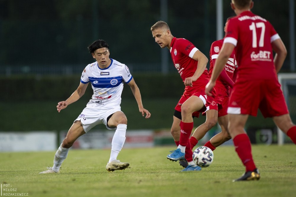 Drugi strzał w kierunku bramki gości padł chwilę po pół godzinie gry. Kamil Adamek podał do Kosei Iwao i Japończyk bez zawahania zdecydował się na uderzenie zza pola karnego. Piłka po jego strzale przeleciała obok bramki.